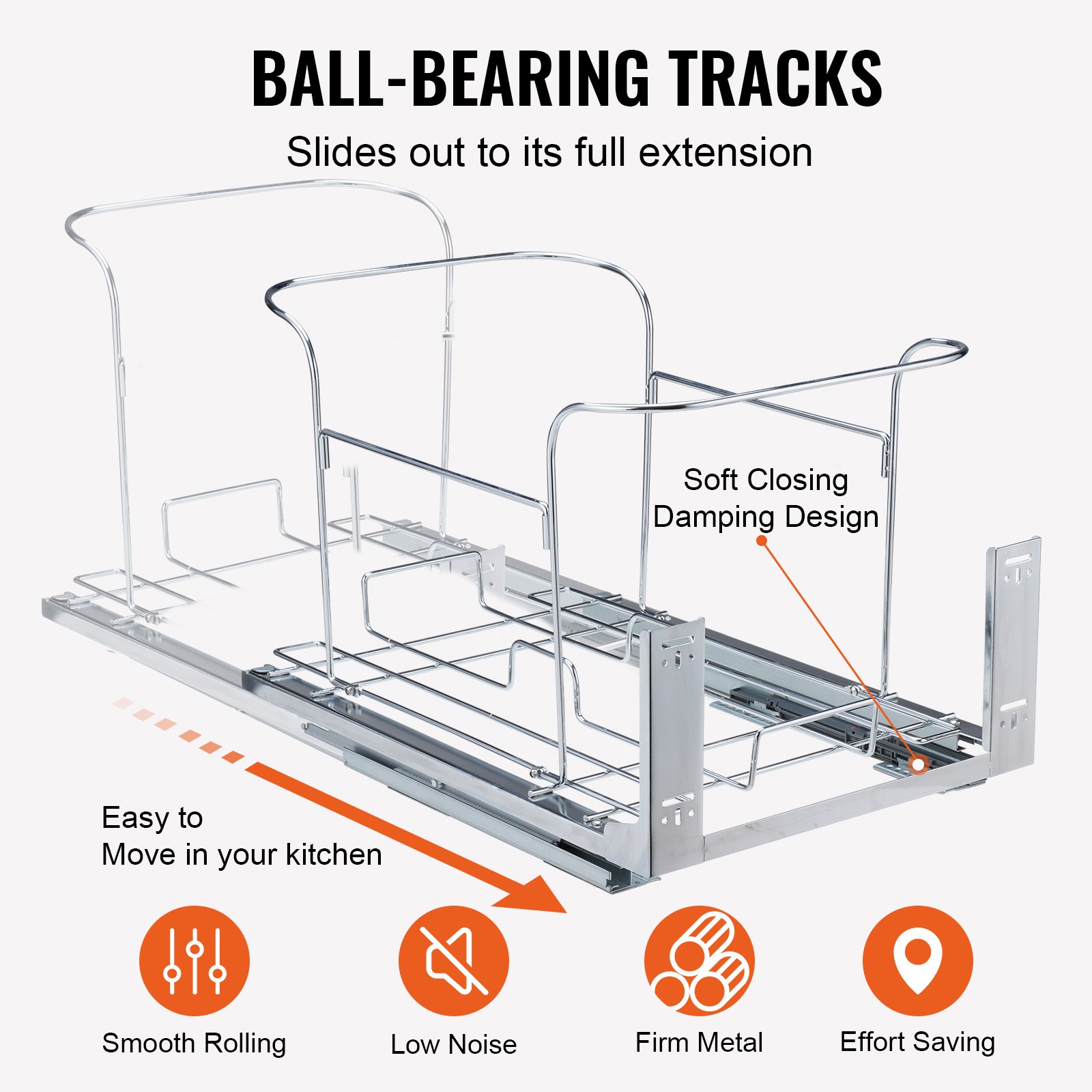 VEVOR Izvlačna kanta za otpad, 35L x 2 dvostruke kante, Podna montažna kanta za kuhinjski otpad s kliznim dijelovima i kompletom za montažu na vrata, Nosivost 50 kg, Izvlačna kanta za smeće za kuhinjski ormarić, sudoper itd.