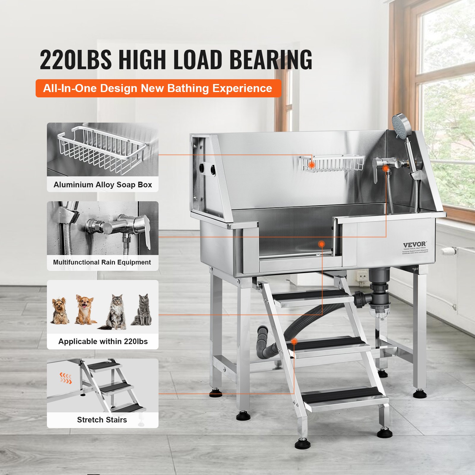 VEVOR Profesionalna kada za njegu pasa 863,6 mm, kada za kućne ljubimce od nehrđajućeg čelika, stanica za pranje pasa, maks. 100 kg, tuš za njegu pasa, stanica za pranje pasa, kada za njegu kućnih ljubimaca, kada za tuširanje pasa