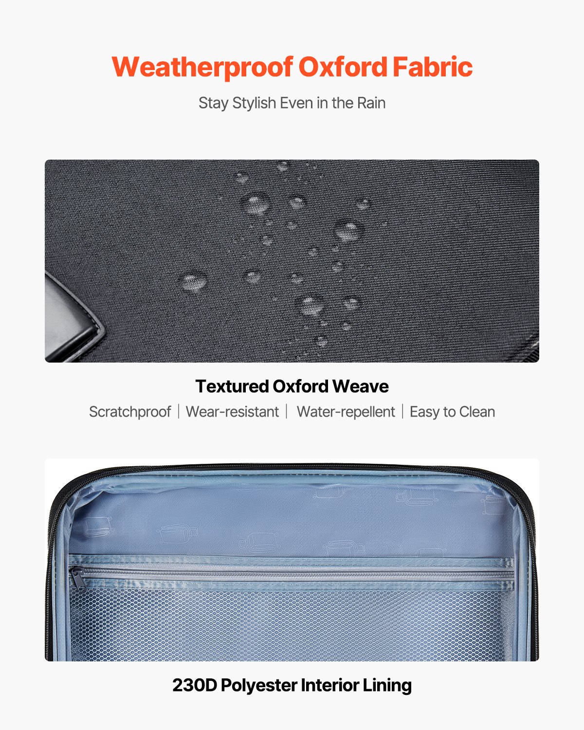 VEVOR Proširivi kofer s mekanim stranicama i kotačićima za okretanje (505 x 340 x 820 mm), ručna prtljaga od tkanine s proširivim džepom s patentnim zatvaračem i TSA bravom, crni kofer za ručnu prtljagu