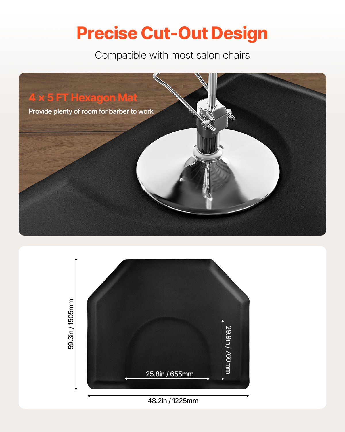 VEVOR Prostirka za frizere, 1225×1505 mm, Šesterokutna podna prostirka protiv umora, Debljina 13 mm za frizerske salone, PVC površina koja se lako čisti i zakošeni rubovi koji sprječavaju spoticanje