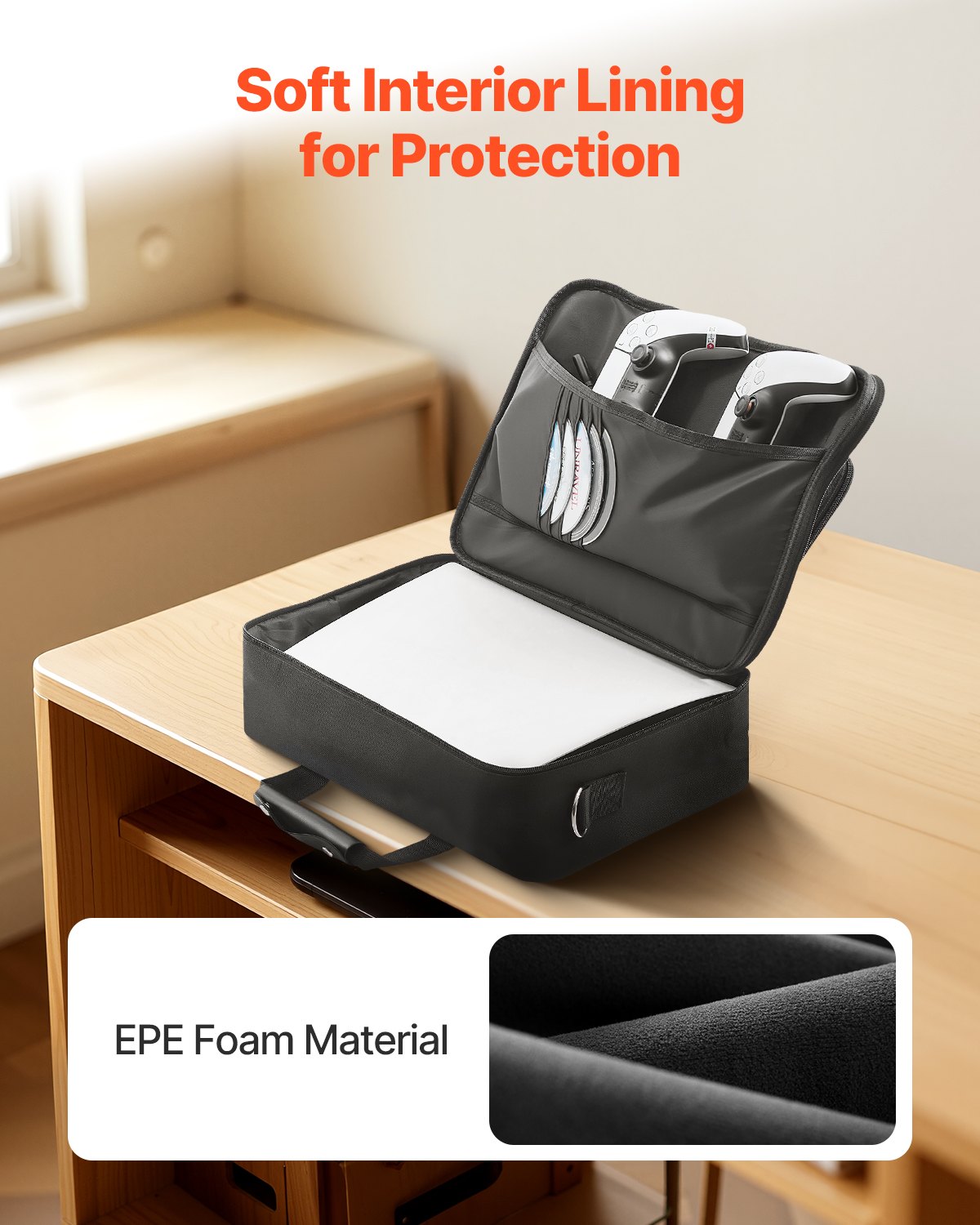 VEVOR PS5 torba za nošenje, putna torba za Playstation 5 i PS5 Slim, vodootporni najlon, mekana podstava i podstavljene pregrade za dodatnu zaštitu, prostrani dizajn, 415x115x315 mm