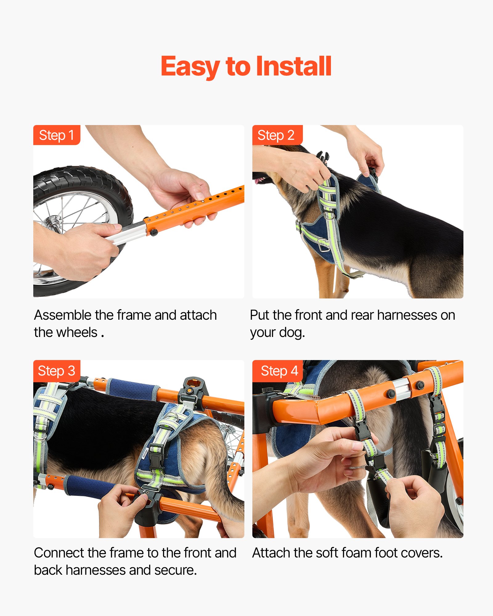 VEVOR pseća invalidska kolica za stražnje noge, invalidska kolica za kućne ljubimce s 2 kotača, visina, širina i Kolica za pse s podesivom duljinom i kotačima koji apsorbiraju udarce, za ozlijeđene ili invalidne pse 21,77–39,92 kg (48–199 lbs)
