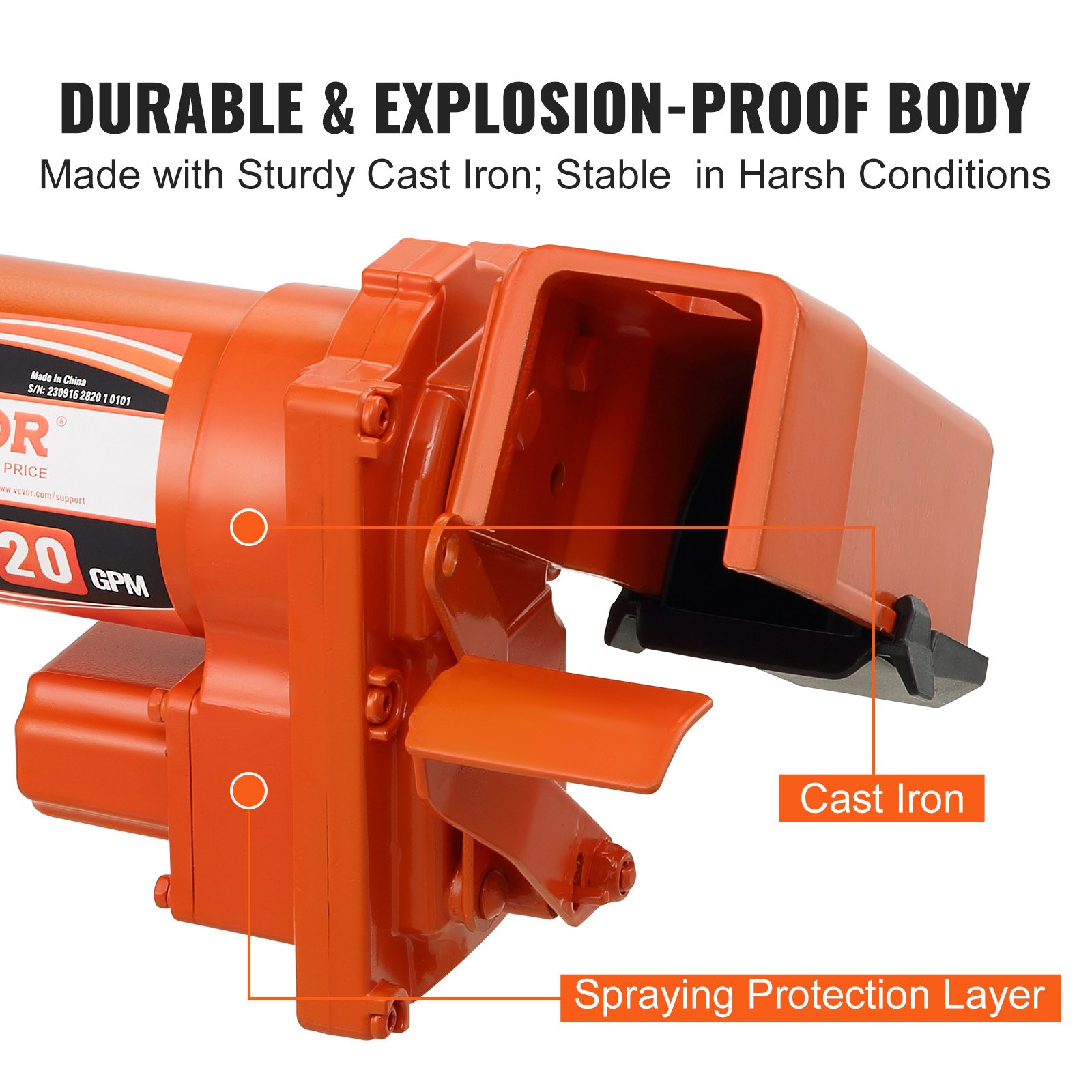 Vrsta proizvoda: Pumpa za prijenos goriva otporna na eksploziju, Veličina proizvoda: 13 x 8,9 x 9,6 in / 330 x 225 x 245 mm, Maksimalni protok: 20 GPM / 75,7 L/min, Promjer ulaza/izlaza: 1 in / 25,4 mm, Težina proizvoda: 19,7 lbs / 8,95 kg, Ulazni napon: DC 12 V, Glavni materijal: Lijevano željezo / Aluminijska legura, Snaga: 1/4 HP, Usisna visina: ≥9,8 ft / 3 m, Broj modela artikla: EX56-12, Primjenjiva vrsta goriva: Benzin / Dizel, Visina isporuke: ≥26,2 ft / 8 m