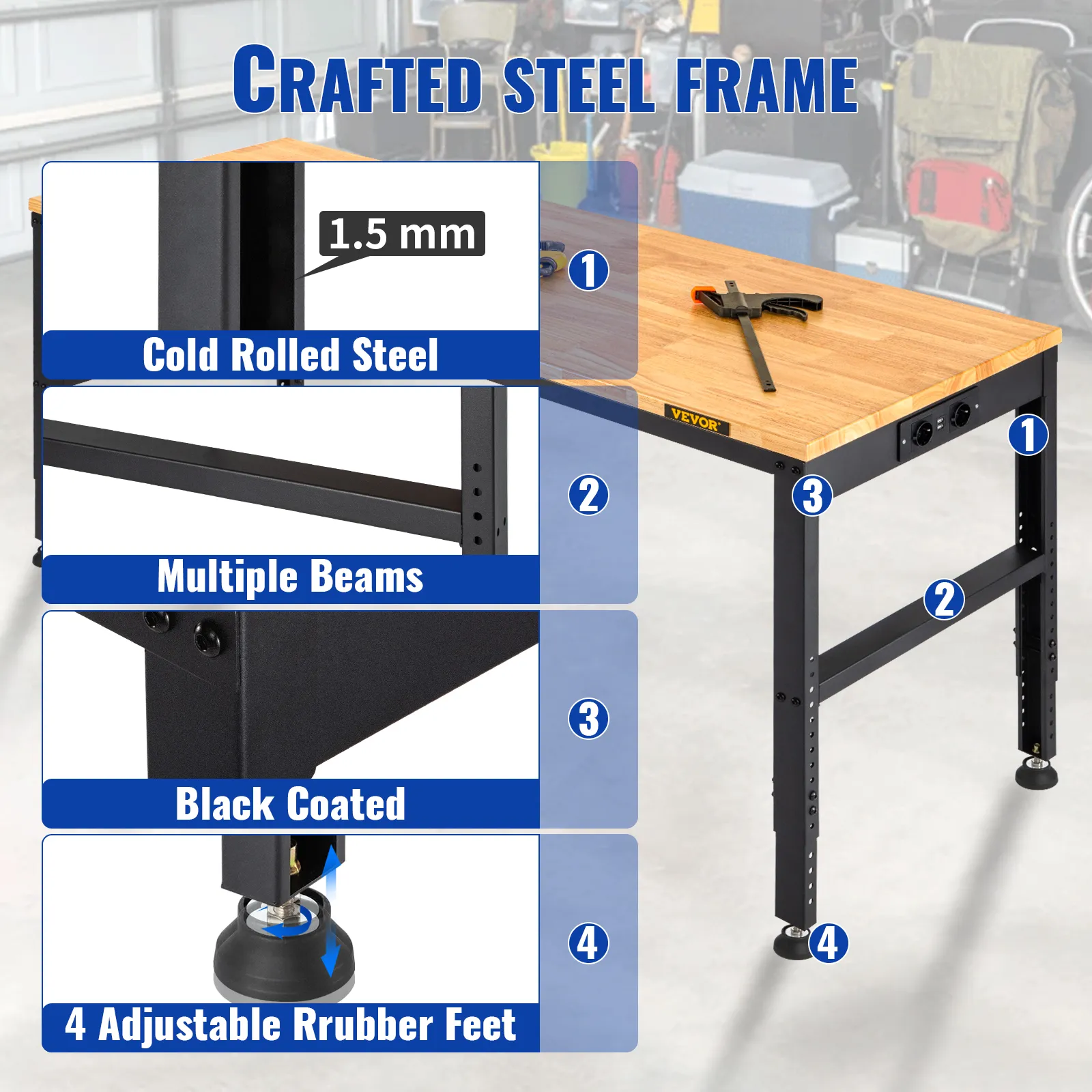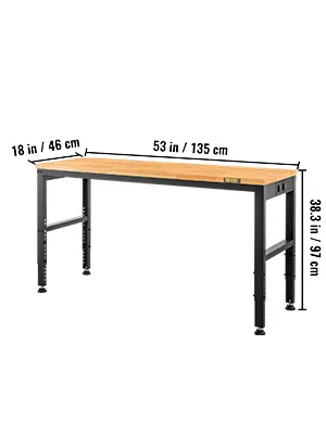 Radni stol ima čvrsti čelični okvir, crnu završnu obradu i više opcija potpore. Ovaj podesivi radni stol poduprt je čvrstim čeličnim nogama, izrađen je za teške DIY projekte i prikladan je za vašu garažu ili radionicu. NAPOMENA: Podesive noge ne utječu na stabilnost stola.
