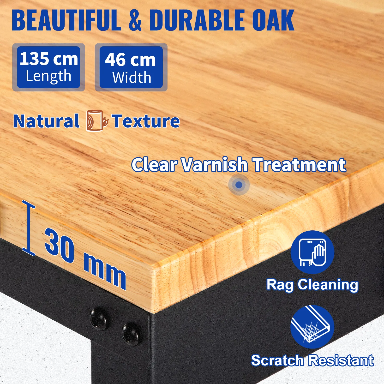 Hrastova daska pruža lijepu, ali otpornu površinu za dugotrajnu upotrebu. Boja u spreju na površini je glatka, bez mirisa i ekološki prihvatljiva. Nadalje, kutovi našeg garažnog radnog stola su zaobljeni kako bi se spriječile nepotrebne točke pritiska i osigurala sigurnost tijekom svakodnevne upotrebe.