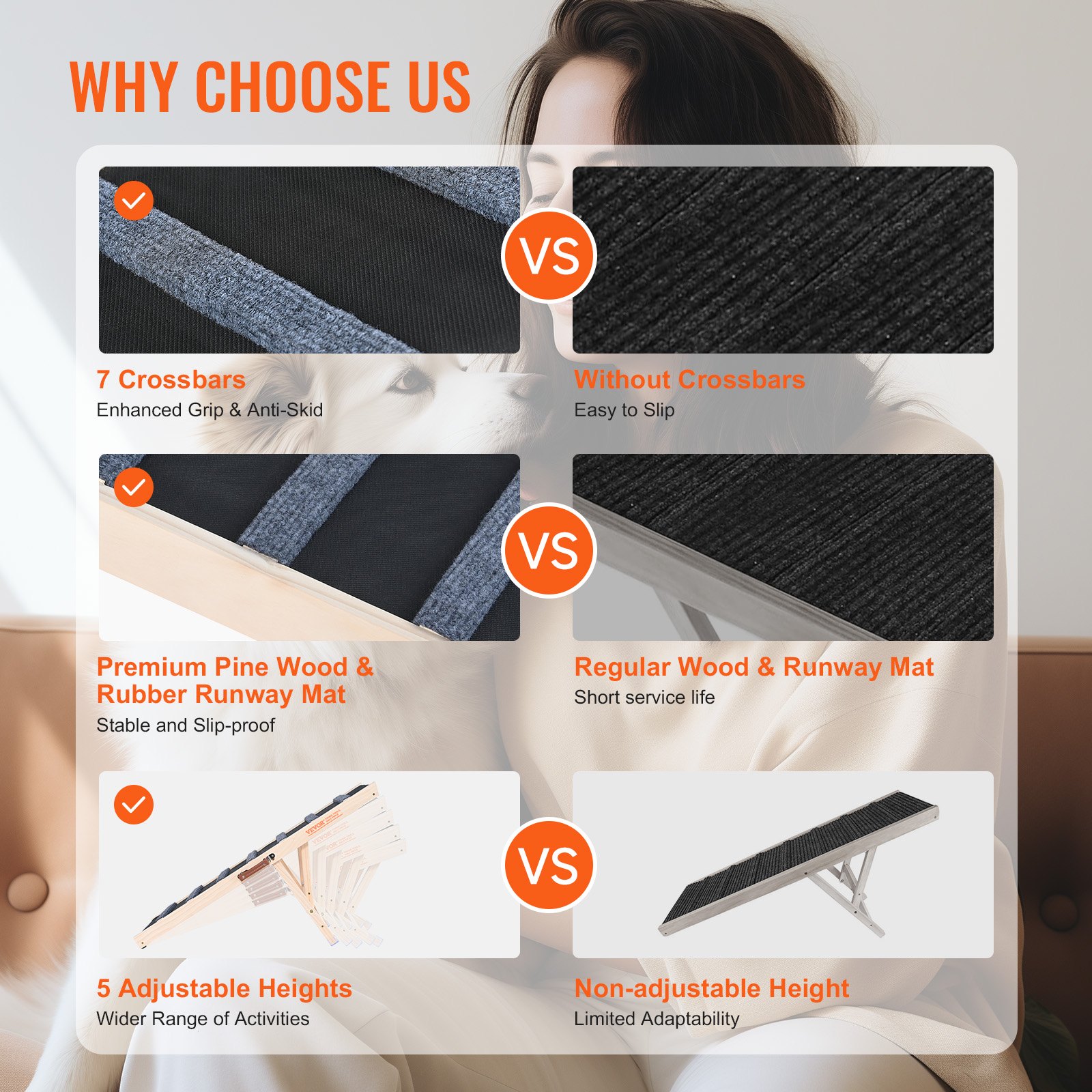 VEVOR Rampa za pse dugačke 1 m stepenice za pse sa 7 prečki Rampa za pseće automobile izrađena od borovine Gumena pomoć za ulazak pasa 5-stepena podešavanja visine Rampa za kućne ljubimce Nosivost cca. 45 kg za velike i male pse