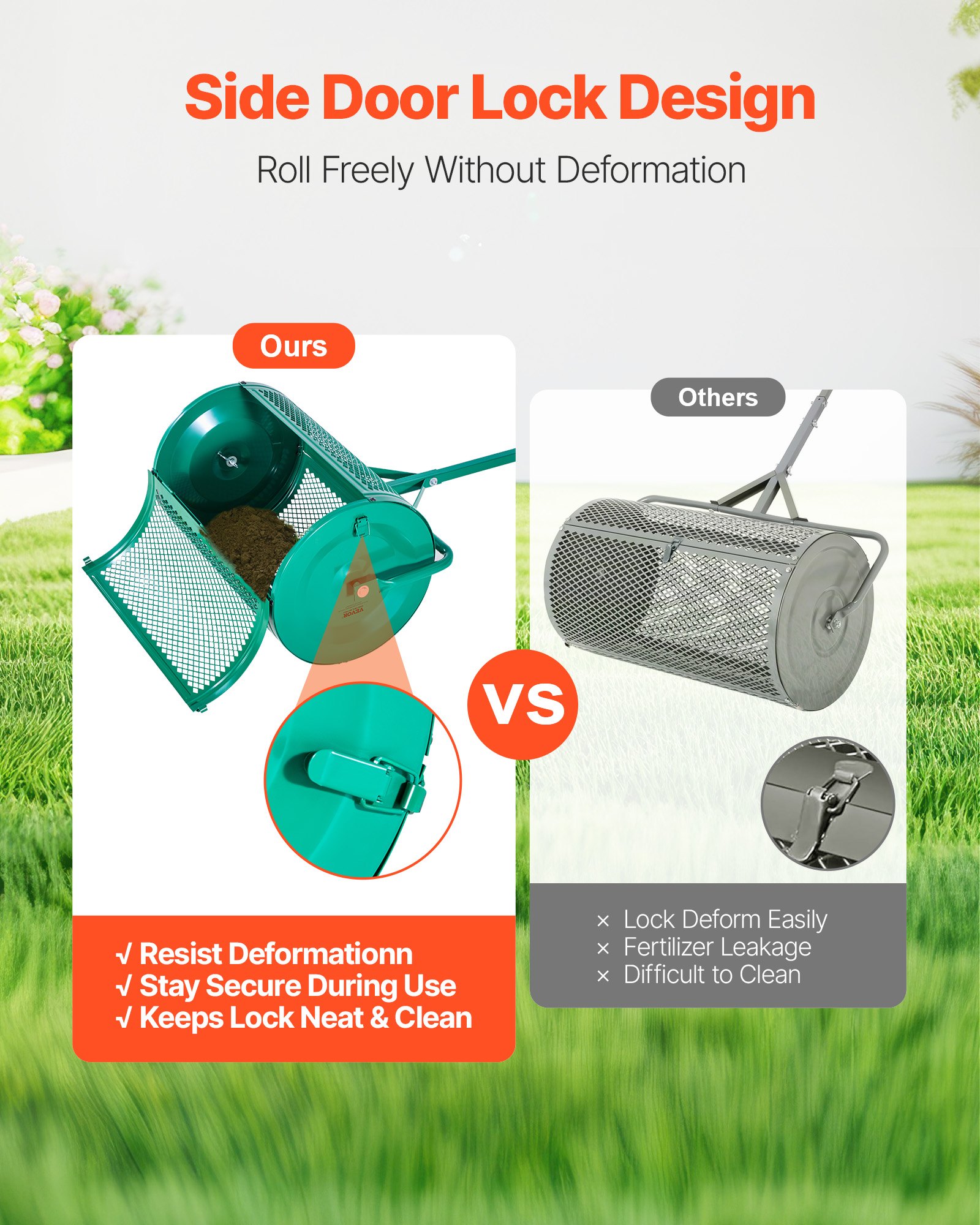 VEVOR rasipač sjemena, rasipač komposta širine 67 cm s ručkom za guranje/povlačenje, rasipač tresetne mahovine s 4 podešavanja visine, vrtni rasipač za vrt, robusni rasipač sjemena trave za sadnju i… Sjetva