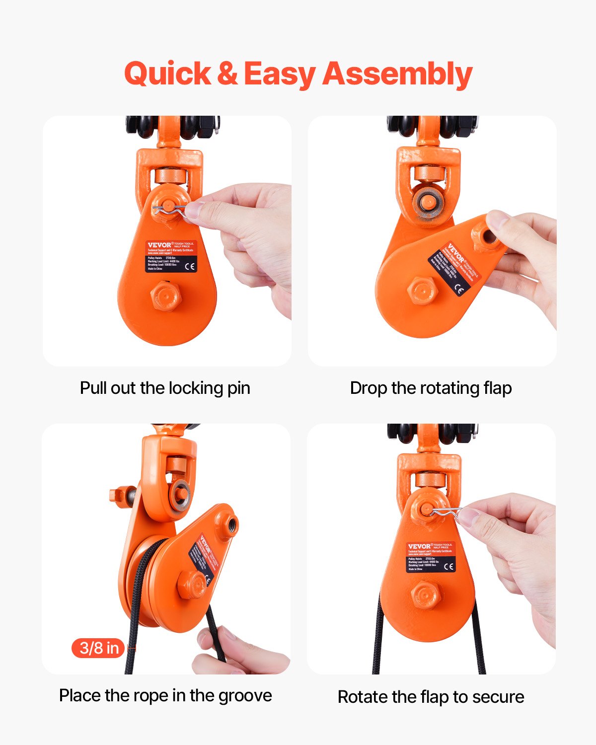 VEVOR remenica od 2 tone s lancem G80, okretnom karikom, remenicom od 74 mm za čelično uže od 3/8 inča, šumarskim vitlom za vuču i… Primjene za vuču na kamionima s ravnom platformom, kamionima za vuču s povratnim vratima