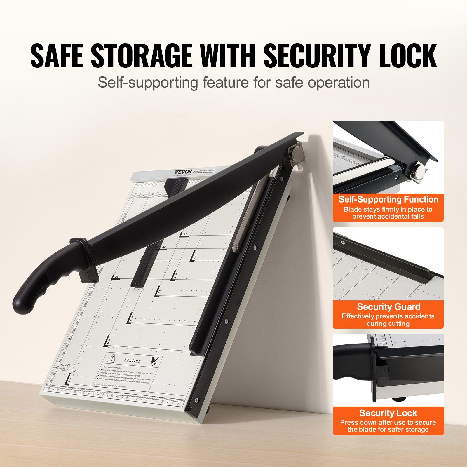 VEVOR Rezač papira s polugom, maksimalna širina rezanja 381 mm Ručni rezač papira, kapacitet 16 listova, sa zaštitnom ogradom / bravom oštrice za karton, Rezač papira