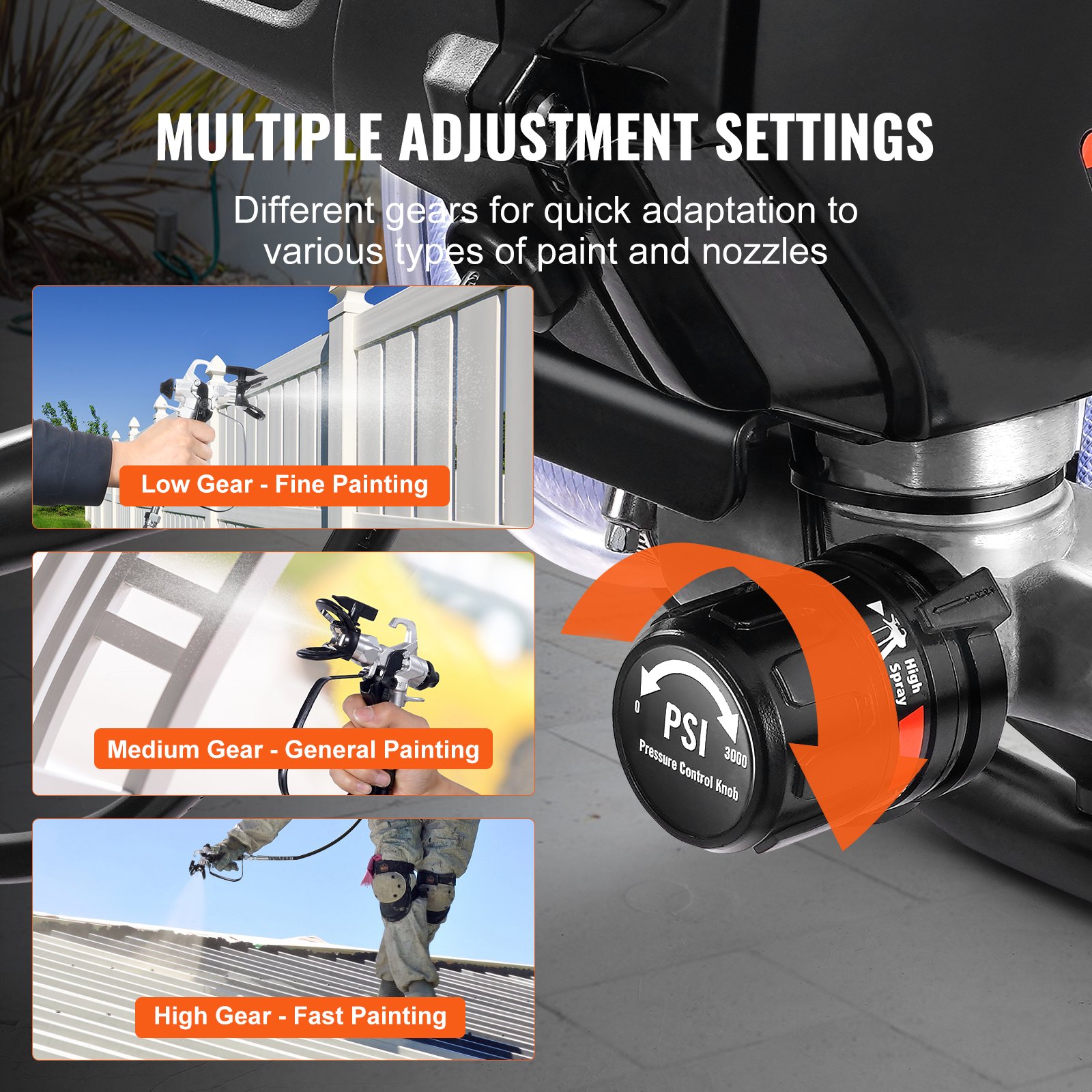 VEVOR Rolabilni bezzračni raspršivač boje, 750 W, 3000 psi, Visokoučinkoviti električni raspršivač, Raspršivači boje, Stroj za prskanje, Visokotlačni bezzračni sustav za prskanje boje s duljinom crijeva od 15 m