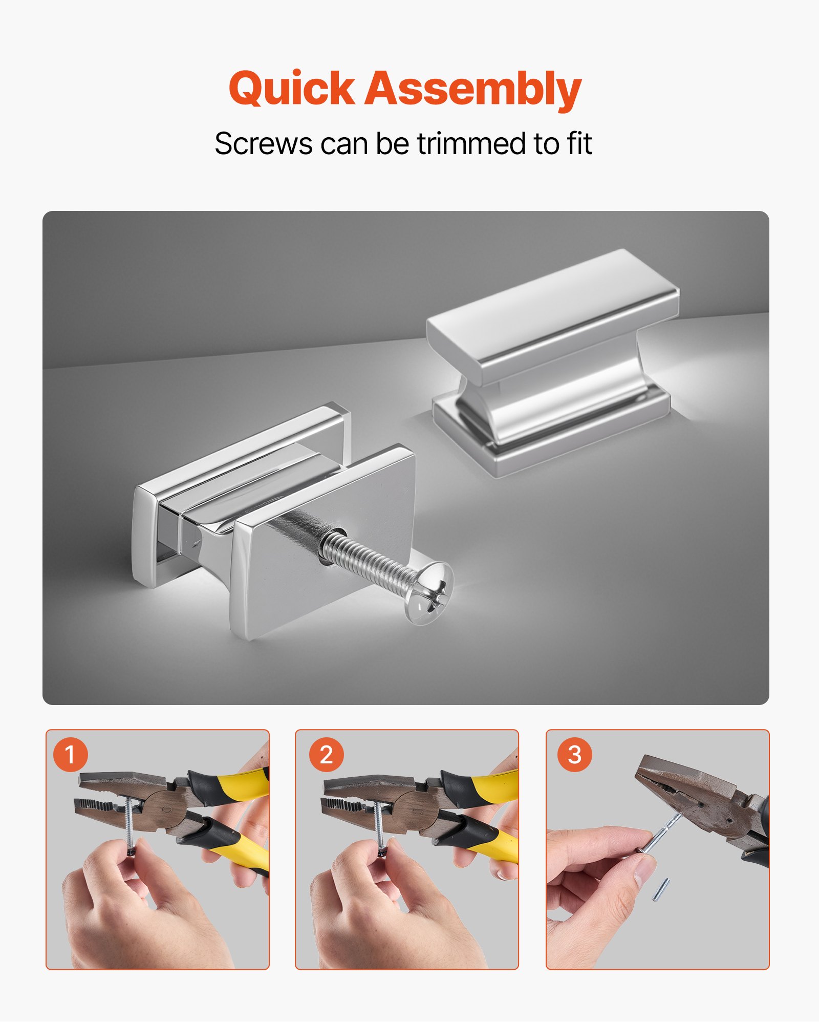 VEVOR ručke za ormariće, pakiranje od 10 komada, ručke za ladice od legure cinka od 1 inča, pravokutne pune ručke za kuhinjske komode, okovi za ormariće s vijcima za kupaonske ormariće, ladice, kromirana završna obrada