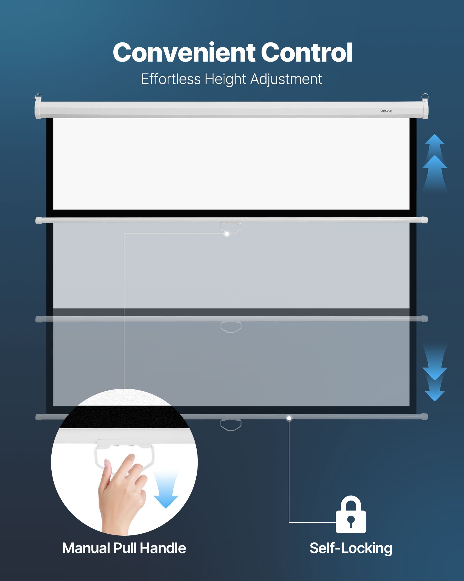 VEVOR Ručno projekcijsko platno, 72-inčni 4:3 4K 1080 HD, Uvlačivo projekcijsko platno, Zidna projekcija filmova s povlačivim užetom, Prijenosno rolo platno za kućno kino