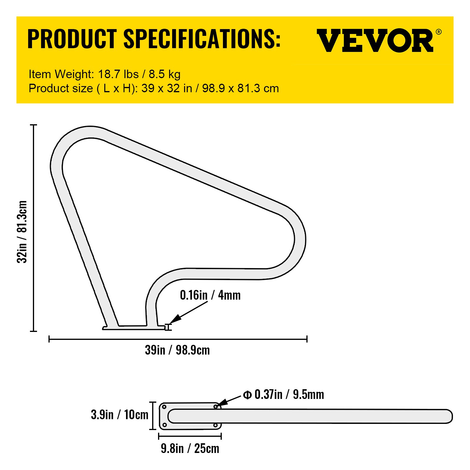 VEVOR Rukohvat za bazen od nehrđajućeg čelika 98,9 x 81,3 cm, luk za prihvat bazena, 113 kg, prijenosna pomoć pri ulasku u bazen, 4,8 cm, zakrivljeni dizajn s poklopcem za ručku za kose bazene, spa, vodeni park
