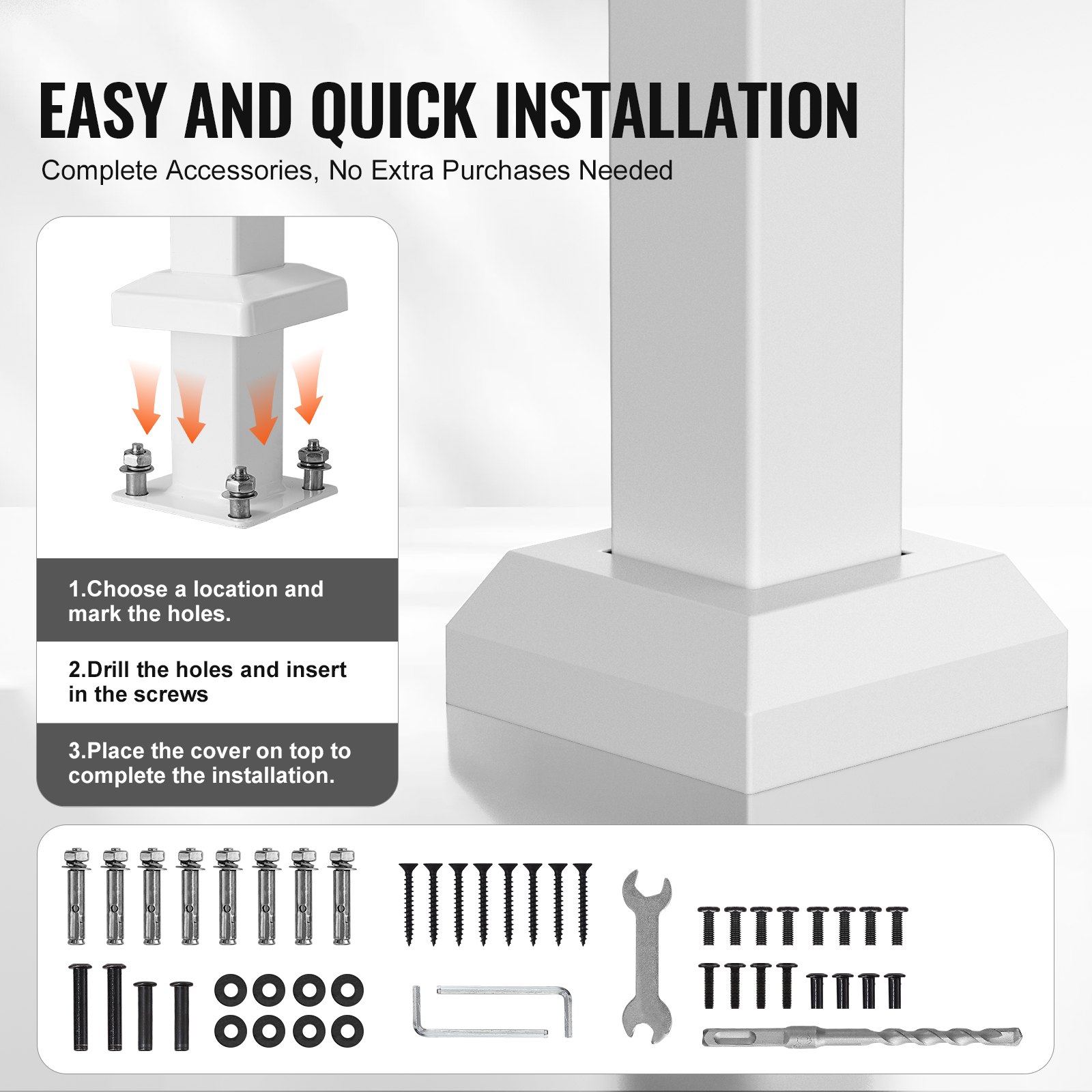 VEVOR Rukohvati za vanjske stepenice, Set rukohvata za stepenice s 1-2 stepenice, Prijelazna ograda od ugljičnog čelika s kompletom za montažu, Ograda za stepenice za starije osobe, Betonske stepenice i trijem i paluba, Bijeli retro luk