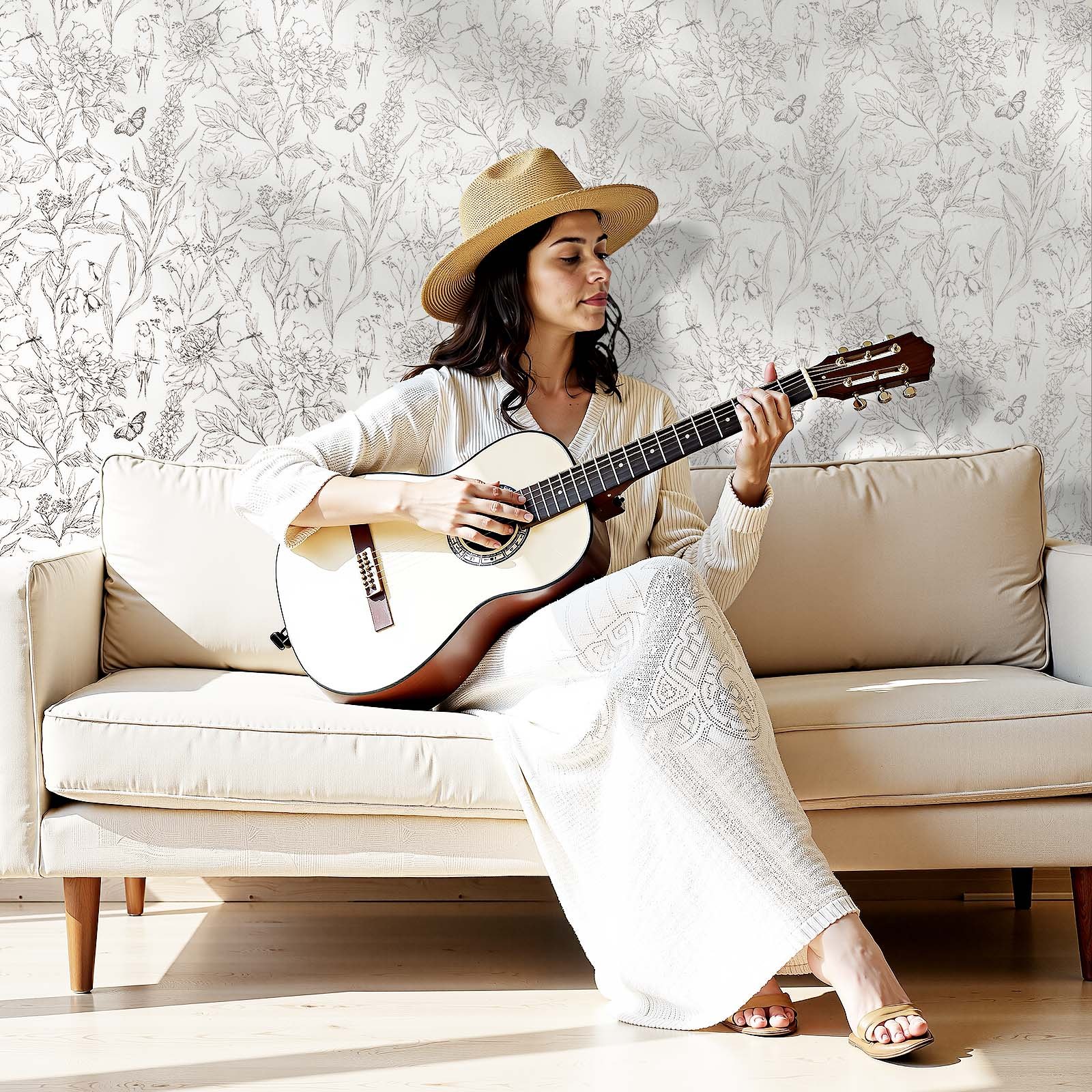 VEVOR Samoljepljive tapete, 45 cm x 10 m, Zidne fototapete, Bijela ljepljiva folija s botaničkim cvjetnim uzorkom, Vodootporne, Folija za namještaj, Dekorativna vinilna rola za spavaću sobu, kuhinju, ured, kupaonicu