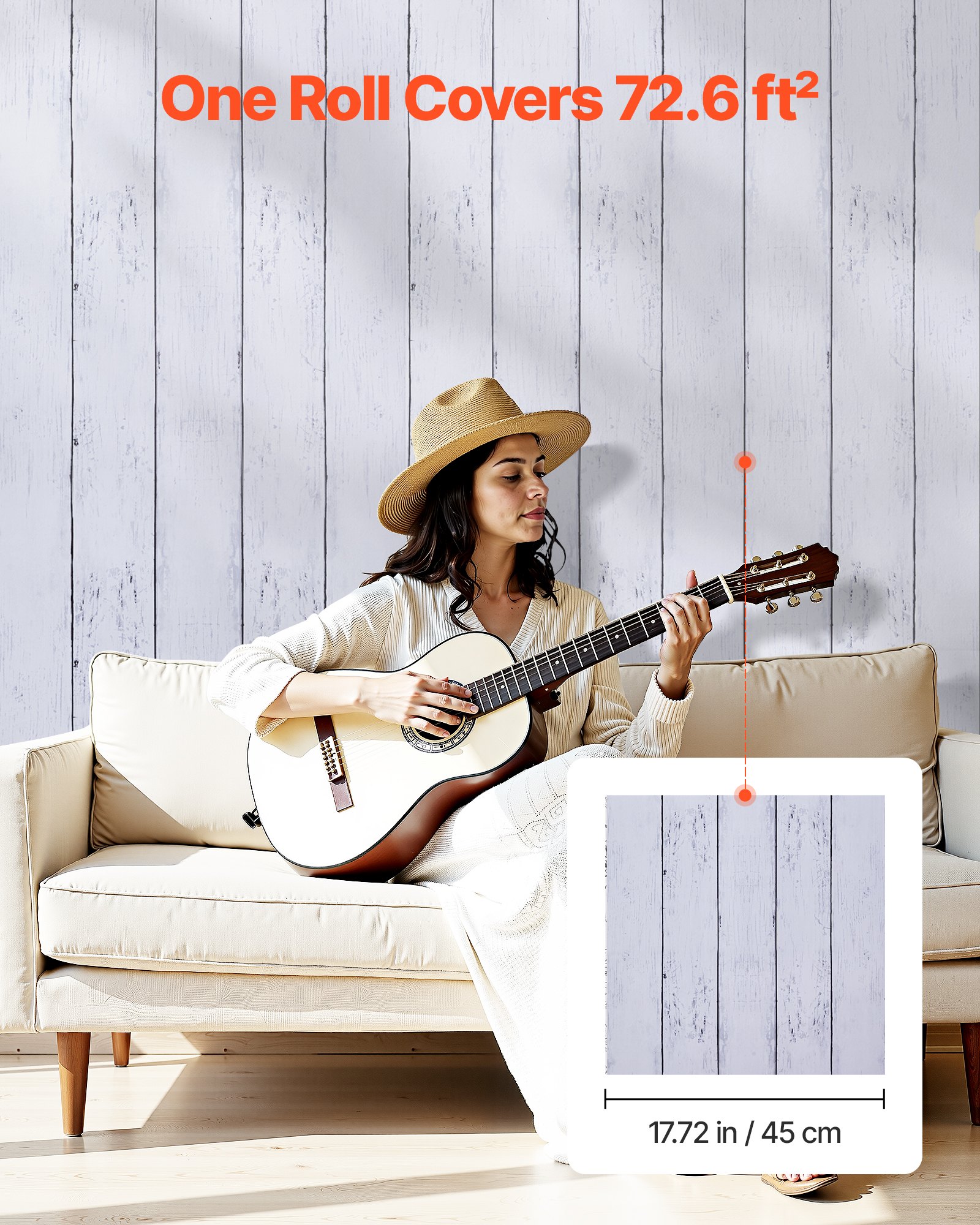 VEVOR Samoljepljive tapete, 45 cm x 15 m, Zidna fototapeta, Ljepljiva folija s izgledom bijelog drva, Folija za namještaj, Naljepnica za namještaj, Dekorativna vinilna rola za spavaću sobu, kuhinju, ured, kupaonicu, radni stol