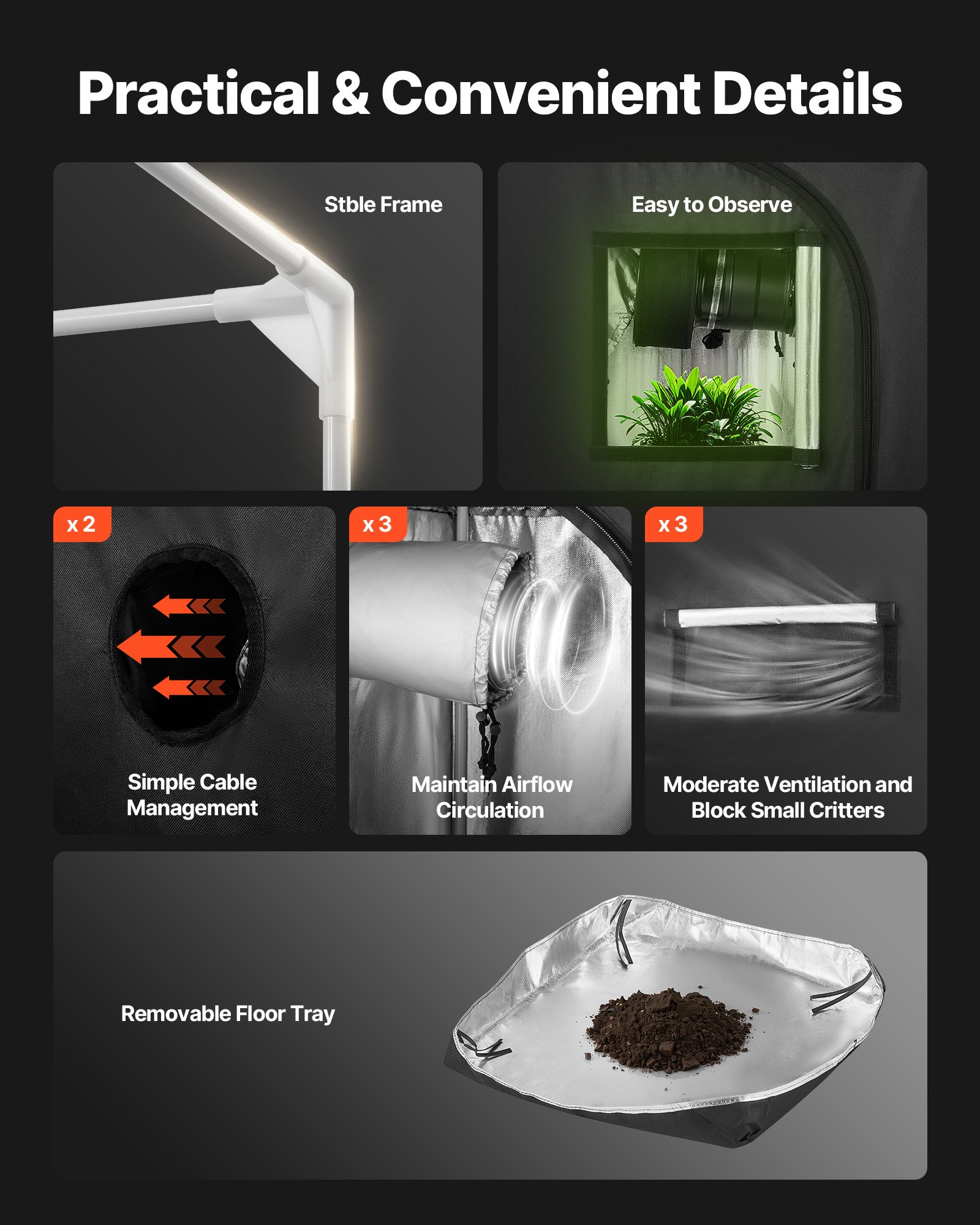 VEVOR šator za uzgoj, 60x60x180 cm, šator za unutarnje biljke s LED svjetlom za uzgoj punog spektra i ventilacijskim sustavom, kutija za uzgoj 600D visoko reflektirajući mylar, šatori za uzgoj, staklenik za cvijeće i… Povrće