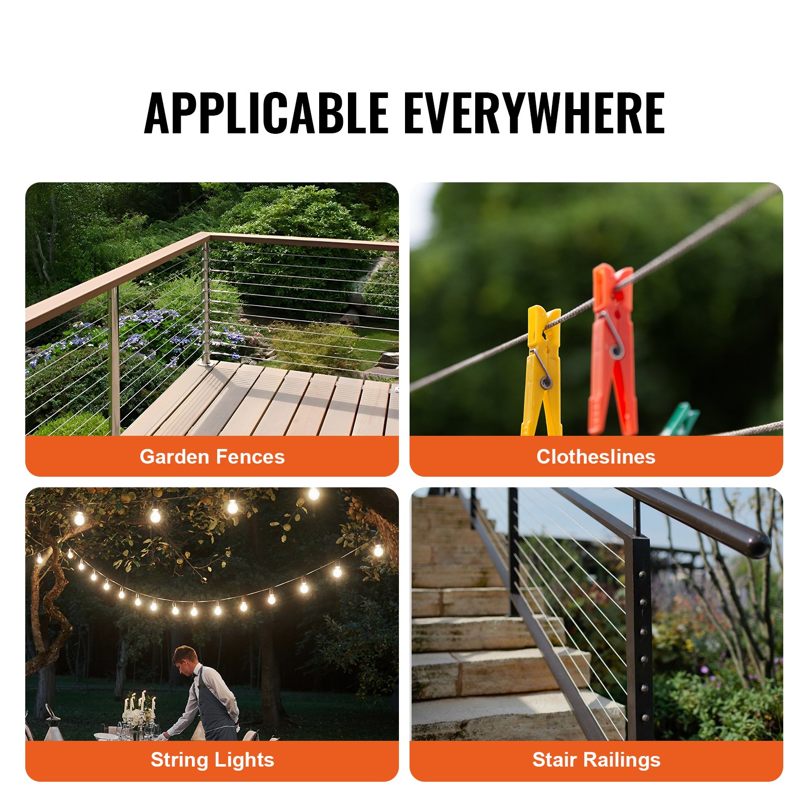 VEVOR komplet žičane užadi, 1,59 mm x 20,2 m, sajla od nehrđajućeg čelika 304 s alatom za krimpovanje, 160 čahura i 12 uški, 7×7 žica, građevinska/pomorska/zrakoplovna kvaliteta za rukohvate, stepenice, terase i vanjske ograde