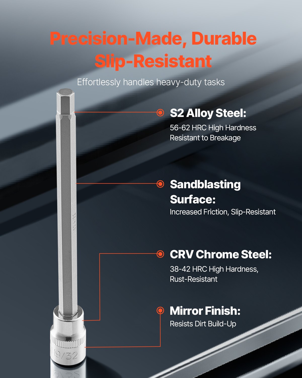 VEVOR Iznimno dugi set šesterokutnih nasadnih ključeva, 18 dijelova s pogonom 3/8″, legirani čelik S2 i Cr-V čelik, standardni SAE i metrički 1/8″-3/8″ (3-12 mm), s poboljšanom kutijom za pohranu