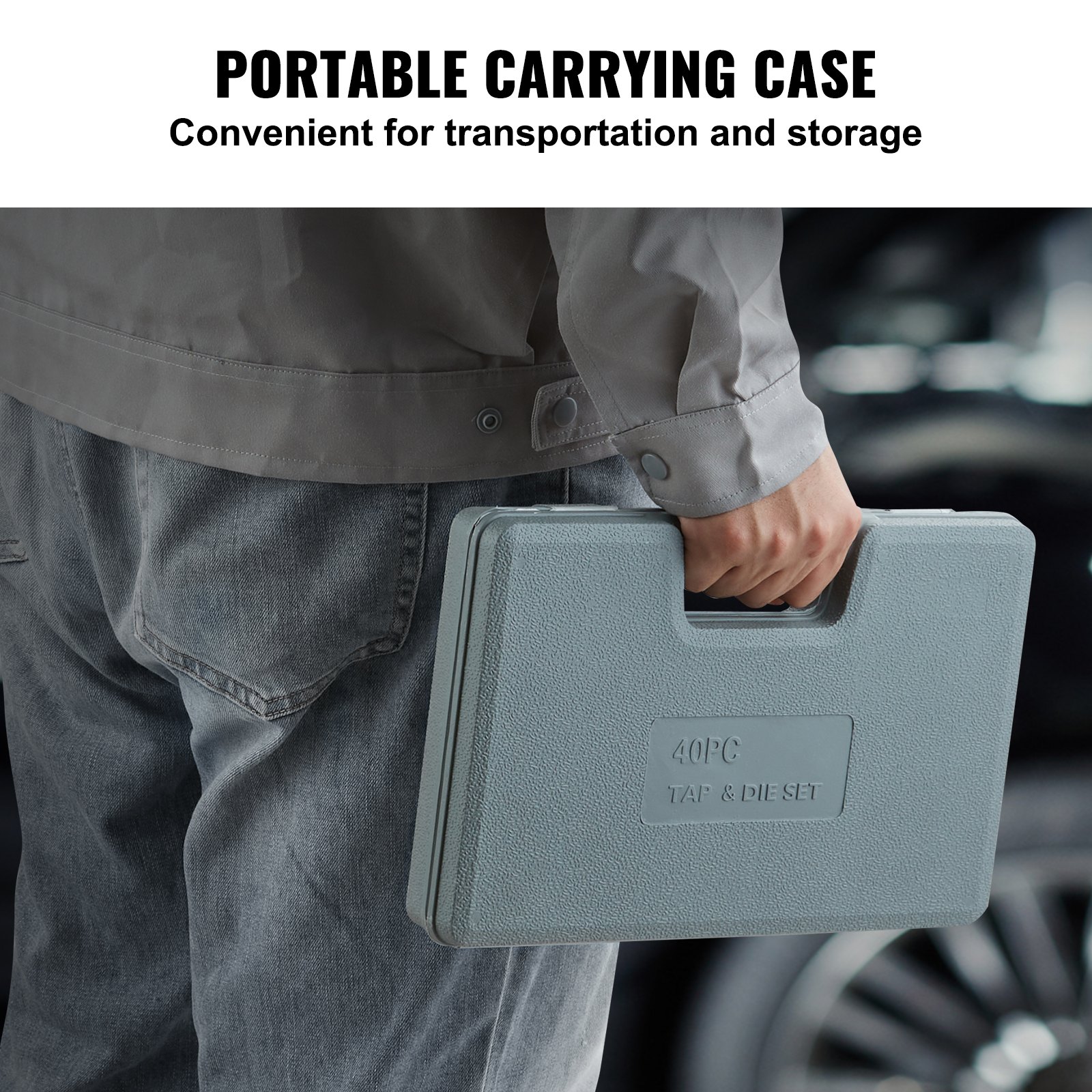 VEVOR set alata za narezivanje navoja, 40-dijelni set alata za strojno narezivanje navoja, svrdlo za jezgre, set alata za rezanje navoja, set alata za strojno narezivanje navoja od čelika za ležajeve uklj. 17 x nareznica, 17 x alata za rezanje navoja, Imperial torba za nošenje