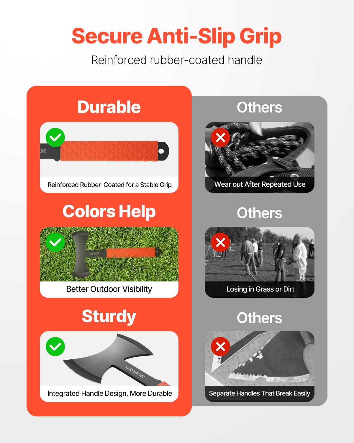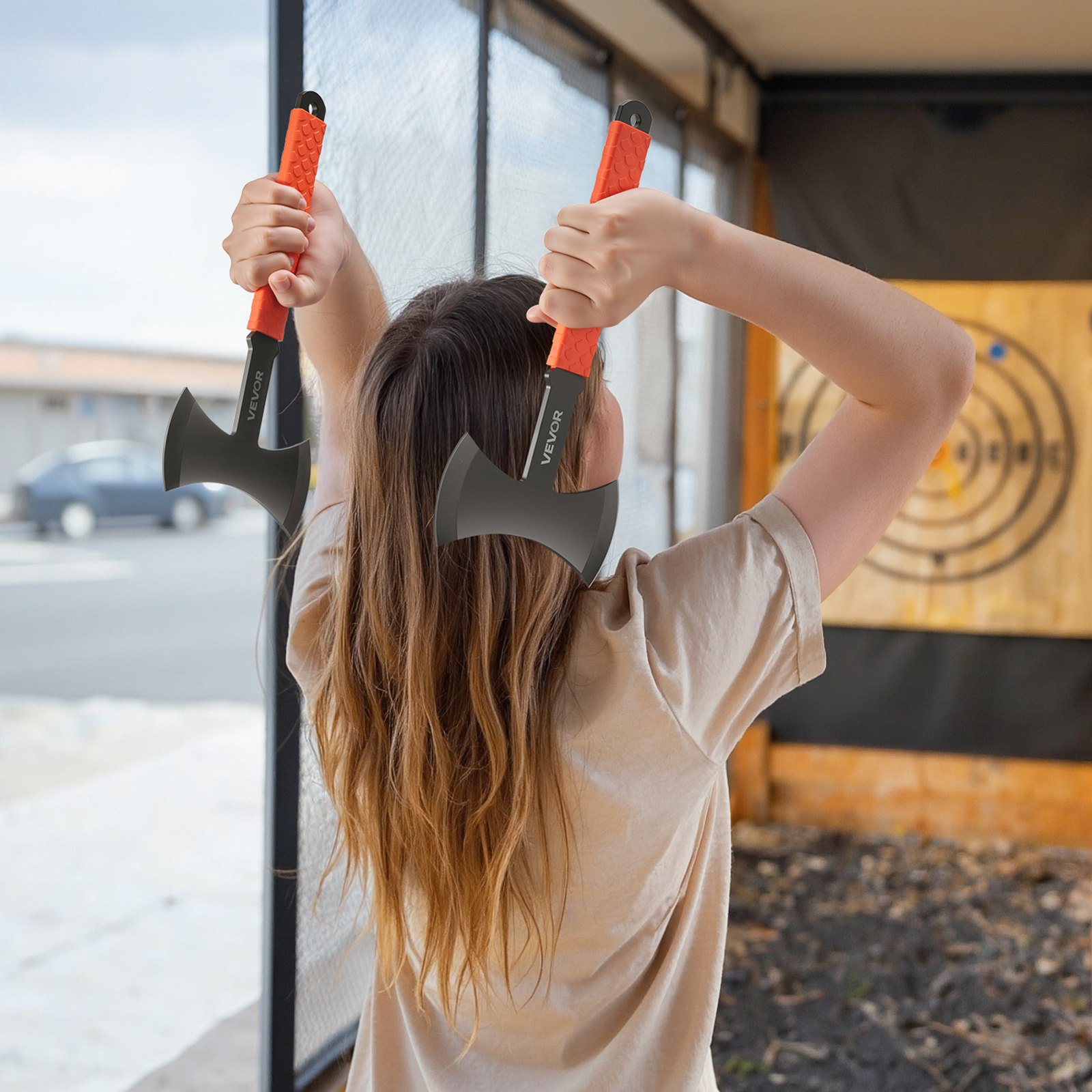 VEVOR Set od 3 sjekire za bacanje i tomahavke Set od 3 dvostruke sjekire za bacanje od 302,3 mm s glavom od nehrđajućeg čelika i neklizajućim TPR gumenim rukohvatom i crnom najlonskom futrolom, za opremu za rekreaciju, natjecanja i kampiranje