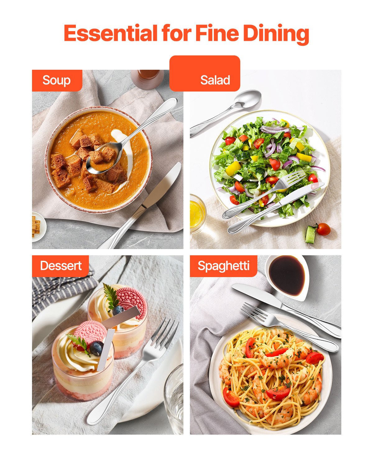 VEVOR 45-dijelni set pribora za jelo od nehrđajućeg čelika prehrambene kvalitete, set pribora za jelo visokog sjaja, posuđe za pranje u perilici posuđa, posluživanje za 8 osoba, uključuje noževe, vilice i žlice