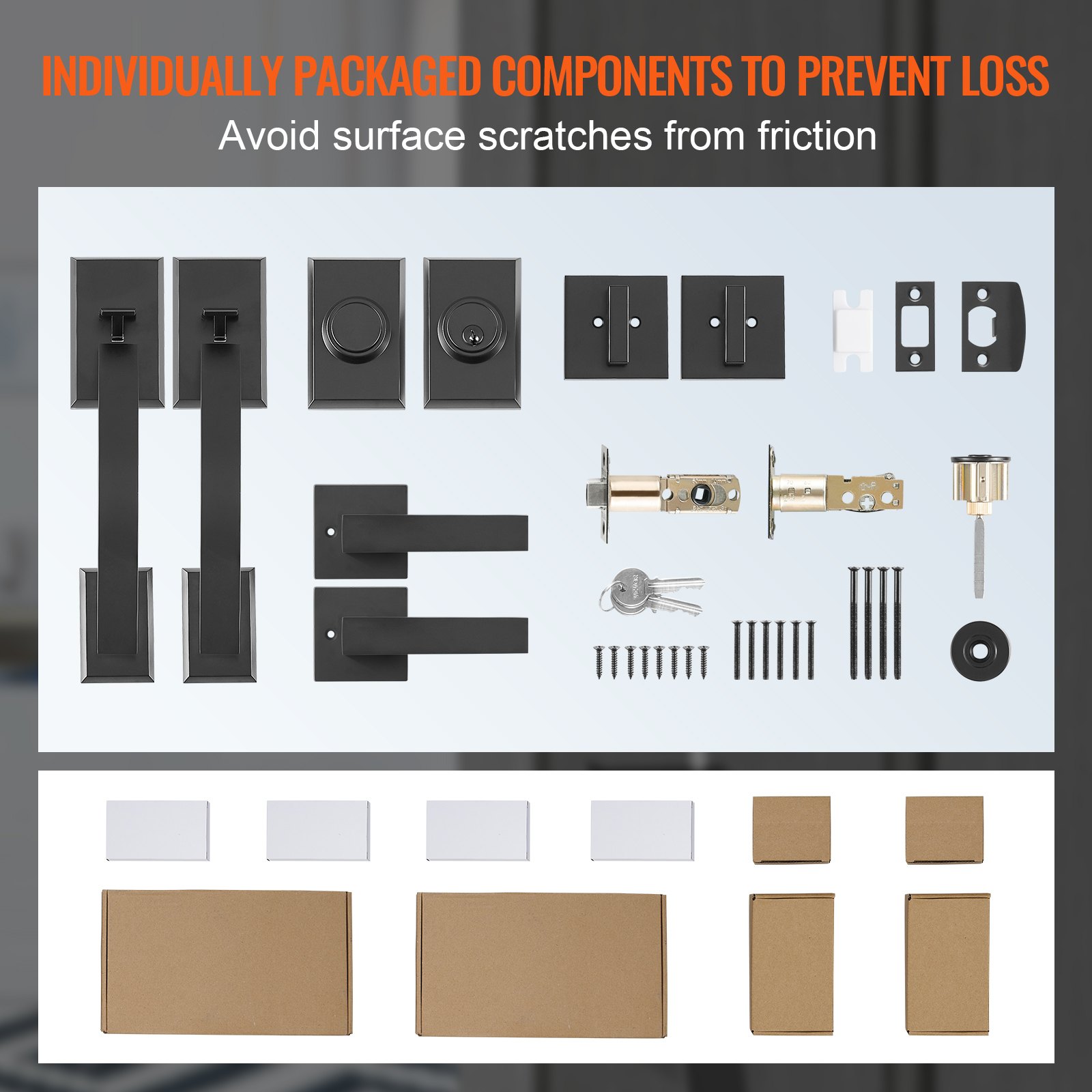 VEVOR Set ručki za dvostruka vrata, mat crna, kupolasta ručka za vrata, Set ručki za dvostruka vrata za ulazna vrata s reverzibilnom ručkom, Set brava za dvostruka vrata za teške uvjete rada, Ručka za vrata za ured ili ulazna vrata