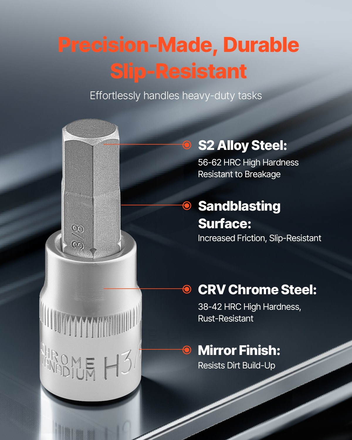 VEVOR set šesterokutnih nasadnih ključeva, 32 dijela, legirani čelik S2 i Cr-V čelik, standardni SAE i metrički, pogoni 1/4″, 3/8″ i 1/2″, s kutijom za pohranu, za mehaničare i popravke automobila