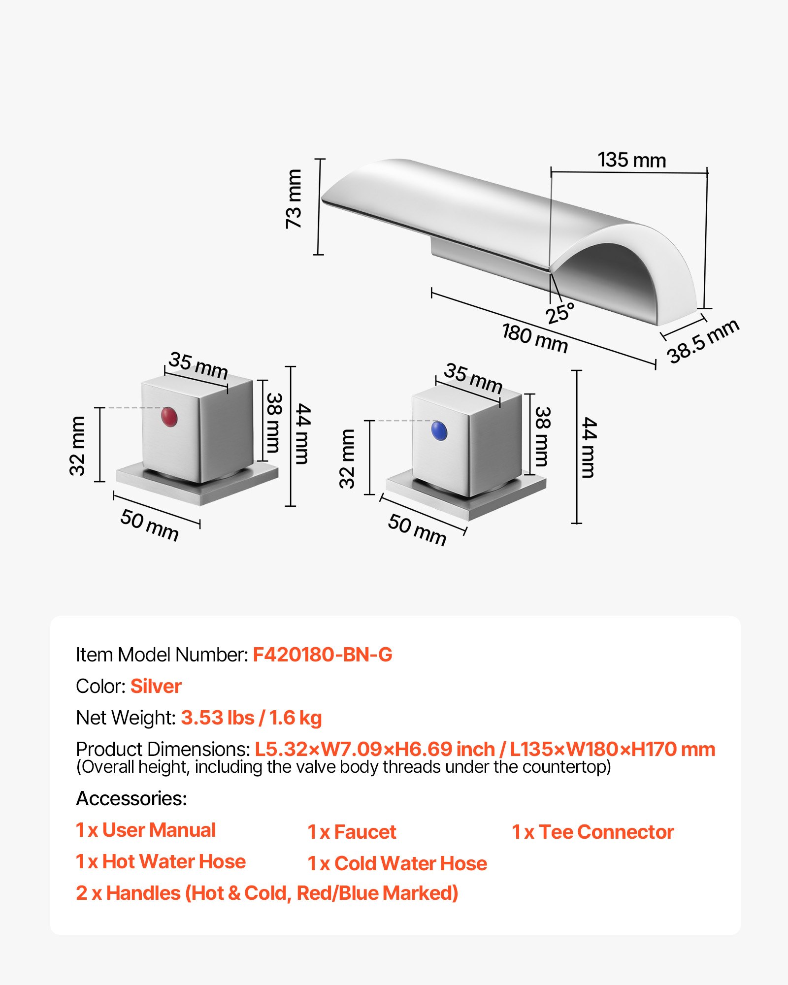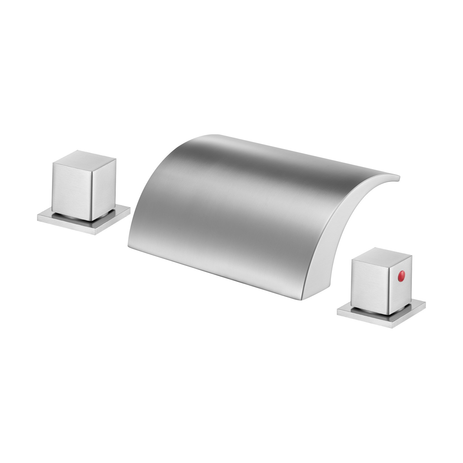 VEVOR Set slavina za rimsku kadu s 3 rupe i 2 ručke, slavina za kadu od nehrđajućeg čelika s niskim izljevom za montažu na ploču za pranje kućnih ljubimaca, srebrna