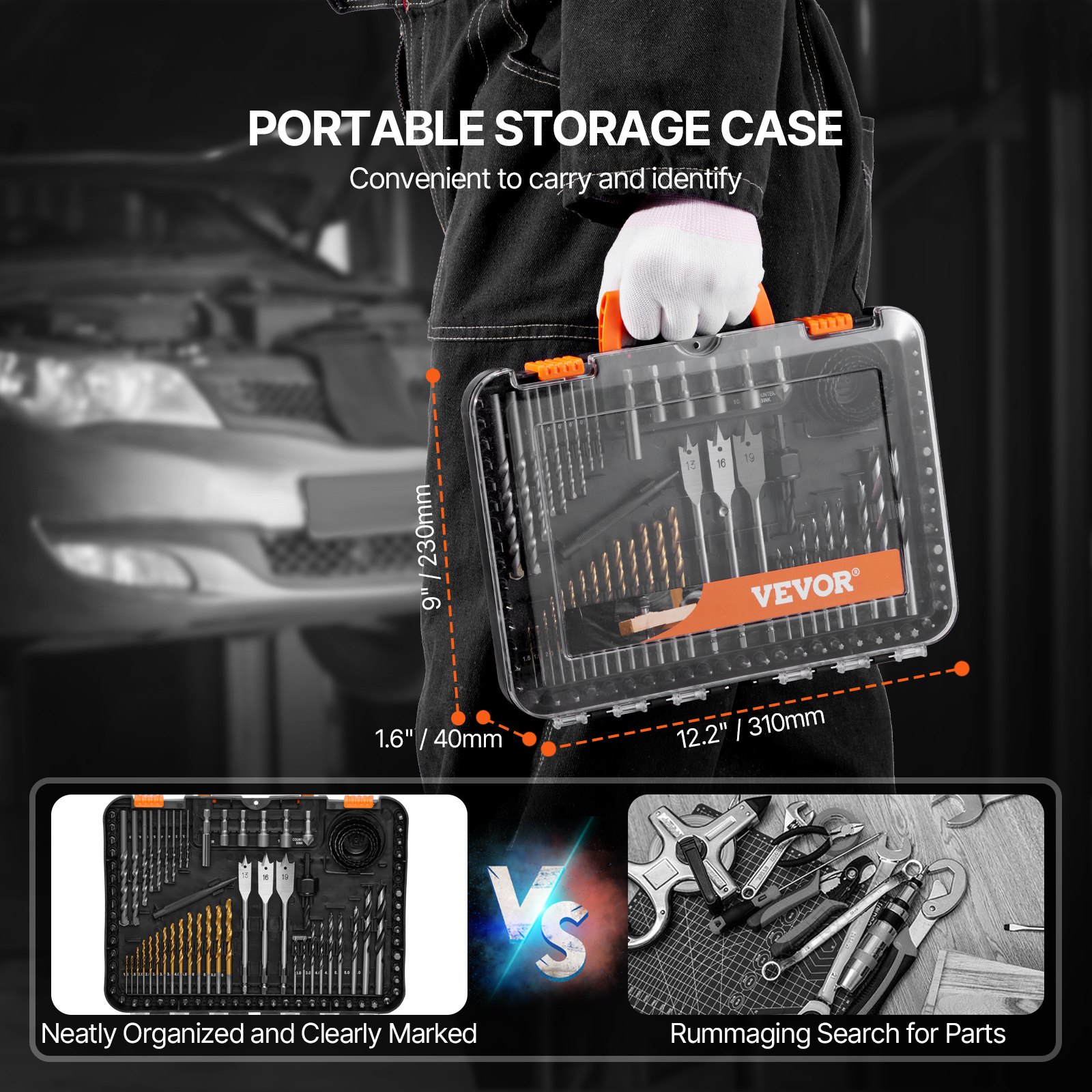 VEVOR set svrdla od 100 dijelova, set odvijača, pogodan za bušenje i uvrtanje vijaka u drvo, metal i cement, kombinirani set svrdla sortiran u organiziranoj torbici za nošenje