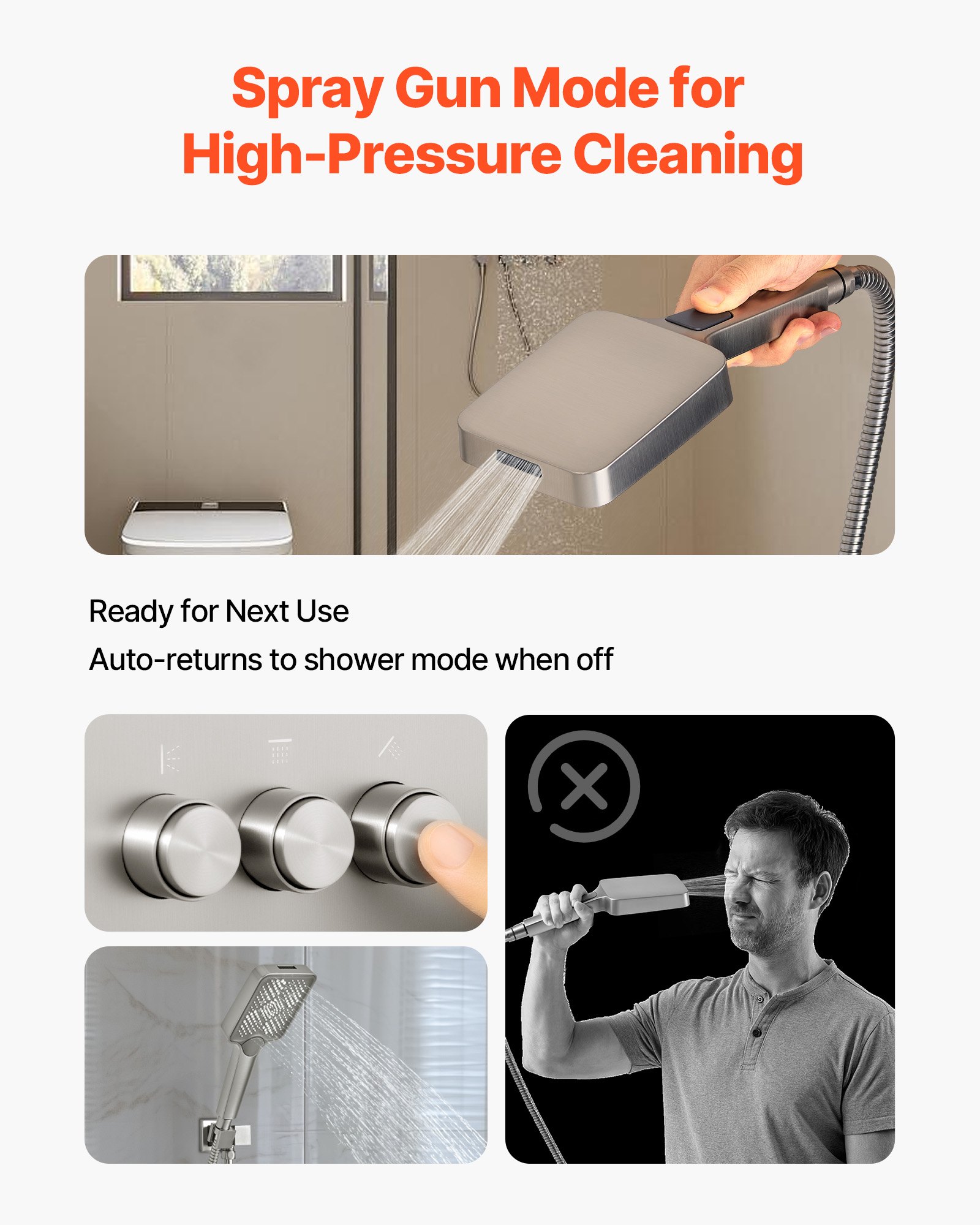 VEVOR Set tuš sustava s tušem s efektom kiše od 30 cm / Zidna glava od 15 cm / Ručna tuš glava 4 u 1, rotirajuća dvostruka glava za kišu (3 funkcije), mesingani ventil i set ukrasa, brušeni nikal