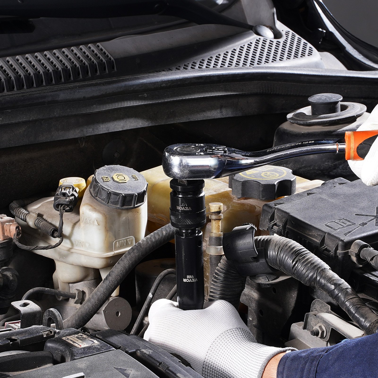 VEVOR Set udarnih nasadnih ključeva 1,27 cm, 43-dijelni set udarnih nasadnih ključeva, Standardni asortiman nasadnih ključeva, Set nasadnih ključeva 12,7 mm, Setovi nasadnih ključeva sa 6 krakova, Metrički 9-30 mm