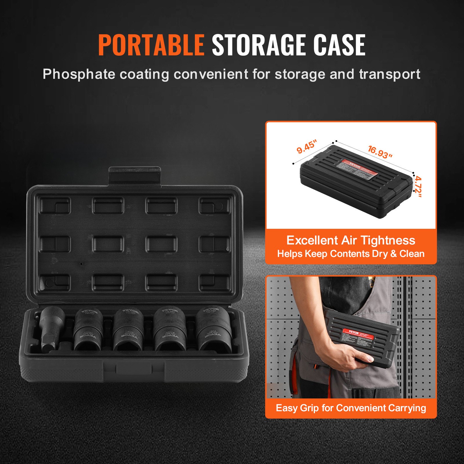 VEVOR Set udarnih nasadnih ključeva za matice kotača, pogon 12,7 mm, metrički i SAE set nasadnih ključeva sa 6 točaka, ukupno 4 veličine matica za kotače, Set nasadnih ključeva od CR-MO čelika s kutijom za pohranu