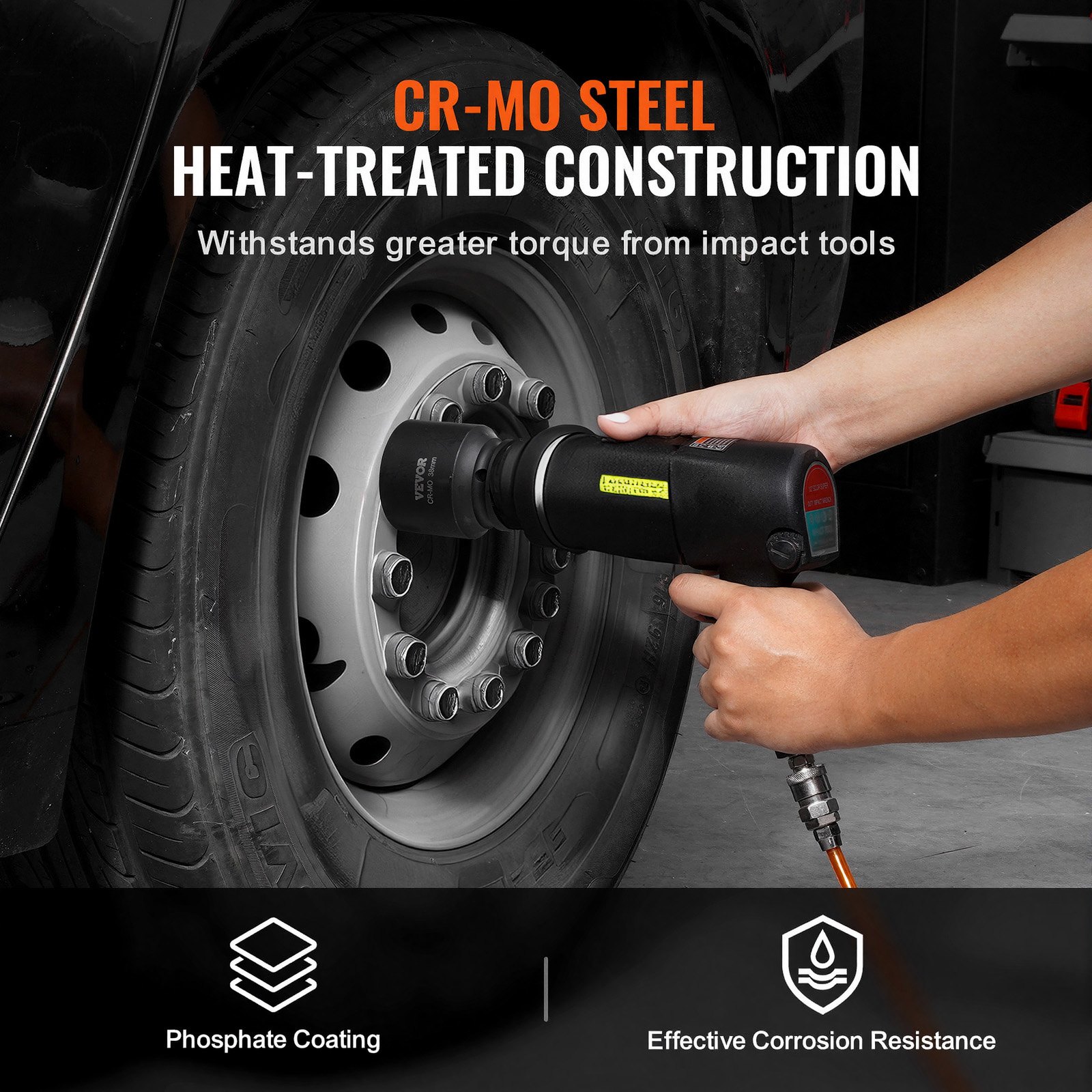 VEVOR Set udarnih nasadnih ključeva za matice osovine, pogon 19,05 mm, 6-kraki, 8-dijelni, metrički, set nasadnih ključeva za matice vretena, set nasadnih ključeva od CR-MO čelika s kutijom za pohranu za popravak automobila