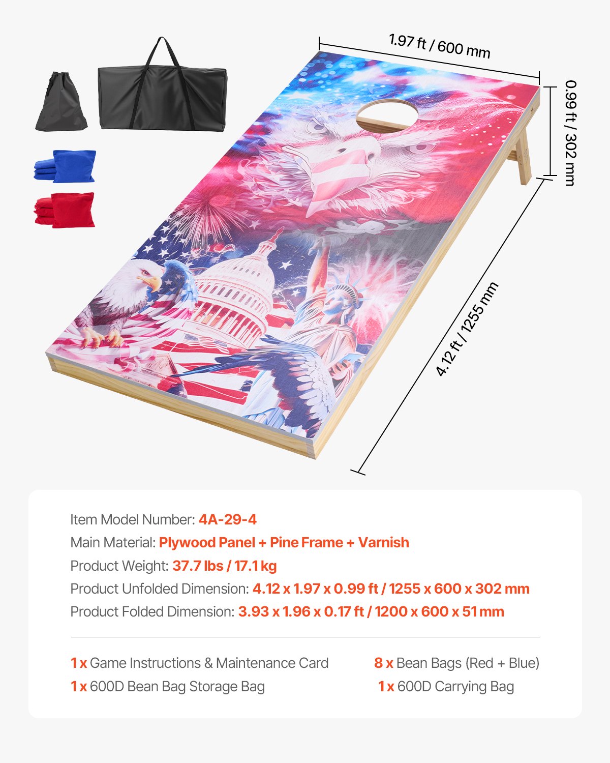 VEVOR Set za igru Cornhole (1255 x 600 x 302 mm) Ploče za igru Cornhole, prijenosna ploča za bacanje od punog drva, igra Cornhole za odrasle, uključuje 8 vreća za nošenje i torbu za nošenje, za vrtno dvorište