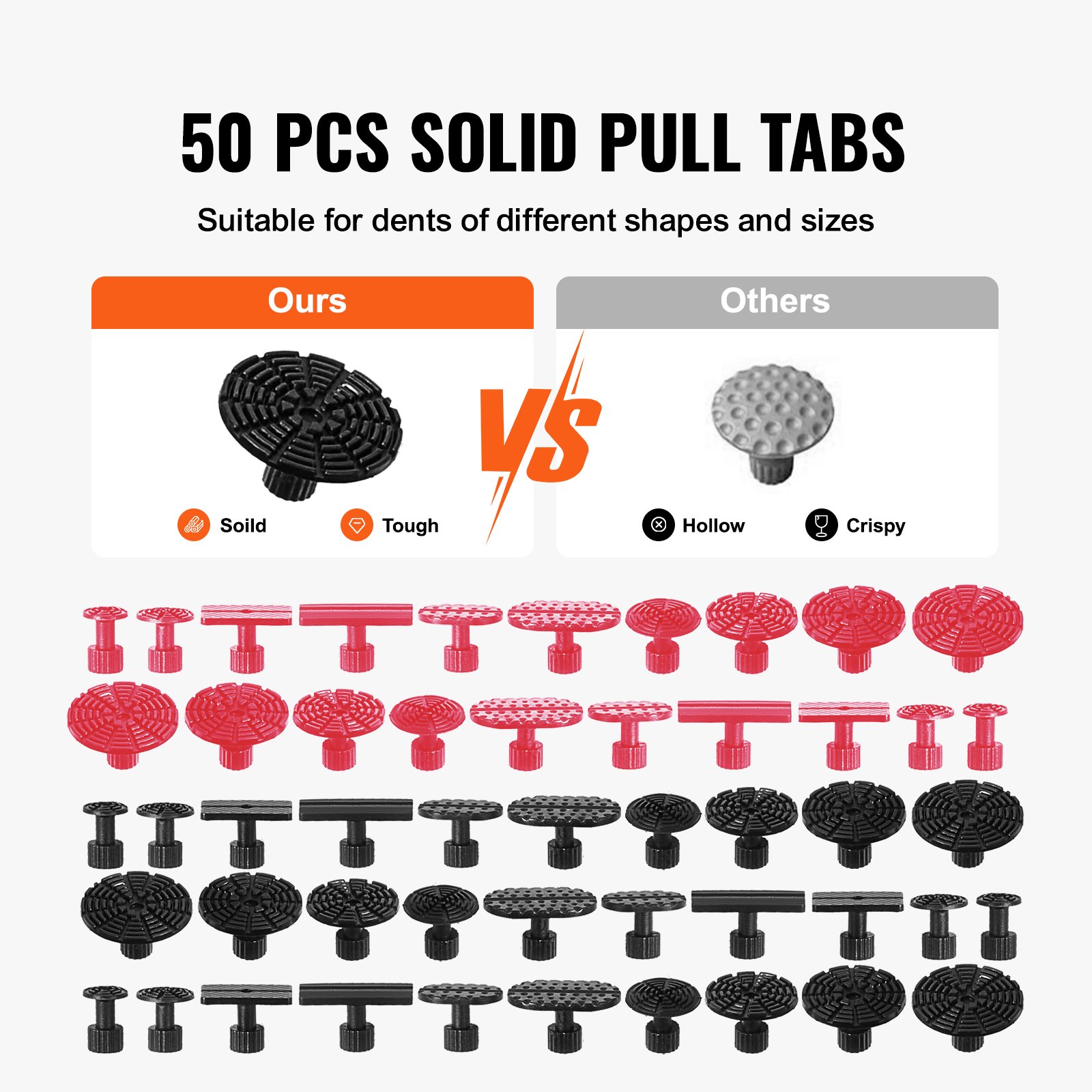 VEVOR Komplet za popravak udubljenja od 107 dijelova s ​​vakuumskom čašicom, izvlakačem mosta, kliznim čekićem 2 u 1, 50 jezičaka za izvlačenje i 6 jezičaka za izvlačenje mosta, alat za uklanjanje udubljenja za automobile