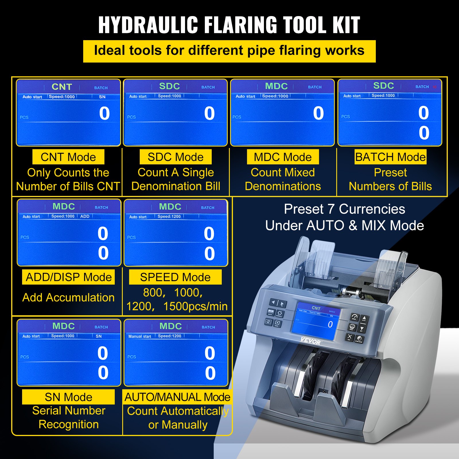 VEVOR SH-07C Brojač vrijednosti, Brojač novca za miješane novčanice, Brojač novčanica, Stroj za brojanje novca 800 komada/min, Stroj za brojanje novčanica, Brojač novčanica, 8 načina rada: UV, MG, MT, IR, Tvrtke, Banke