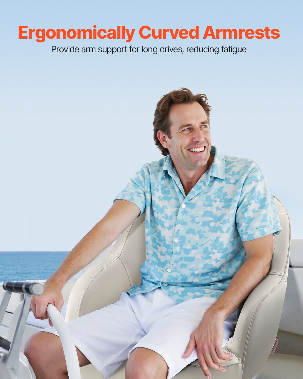 VEVOR sjedalo za brod, sklopivo sjedalo za ribarski brod s niskim naslonom, zadebljanim spužvastim jastukom i PVC kožom te ergonomskim dizajnom, sjedalo za ribarske brodove, jahte i brodove, bijelo