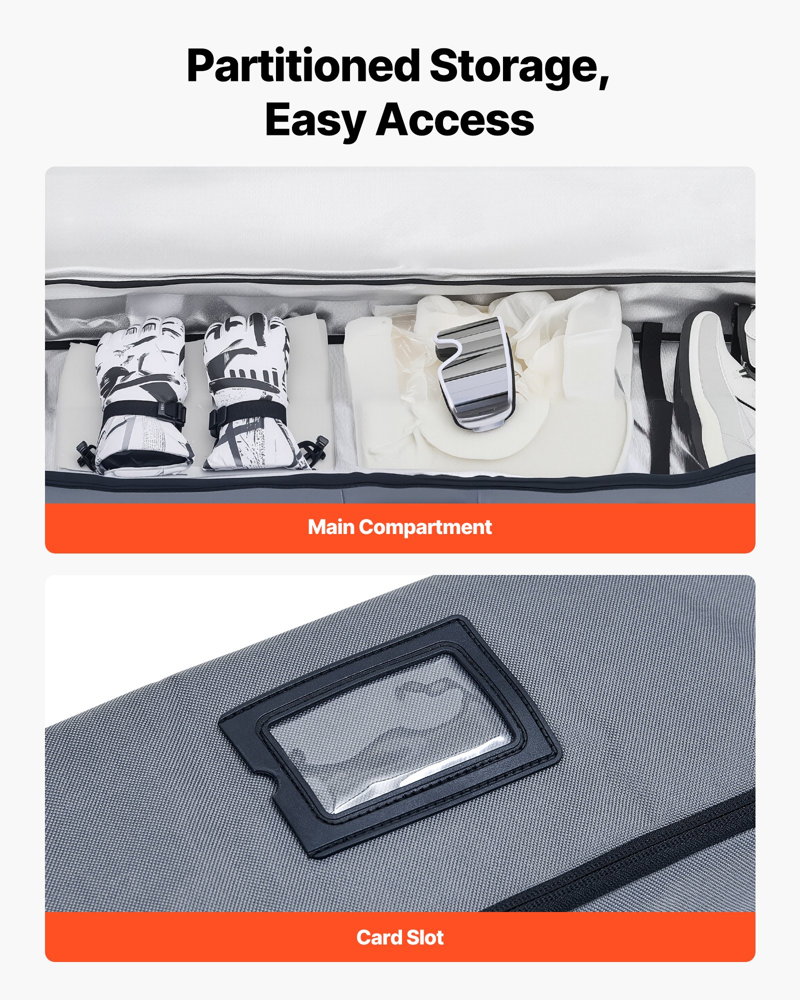 VEVOR Skijaška torba, do 165 cm, Skijaška torba, Skijaška vreća, Skijaška navlaka, Vodootporna 600D Oxford tkanina, s podesivim unutarnjim remenima, Skijaška vreća za skijaške štapove, naočale, rukavice, kacige, čizme (siva)