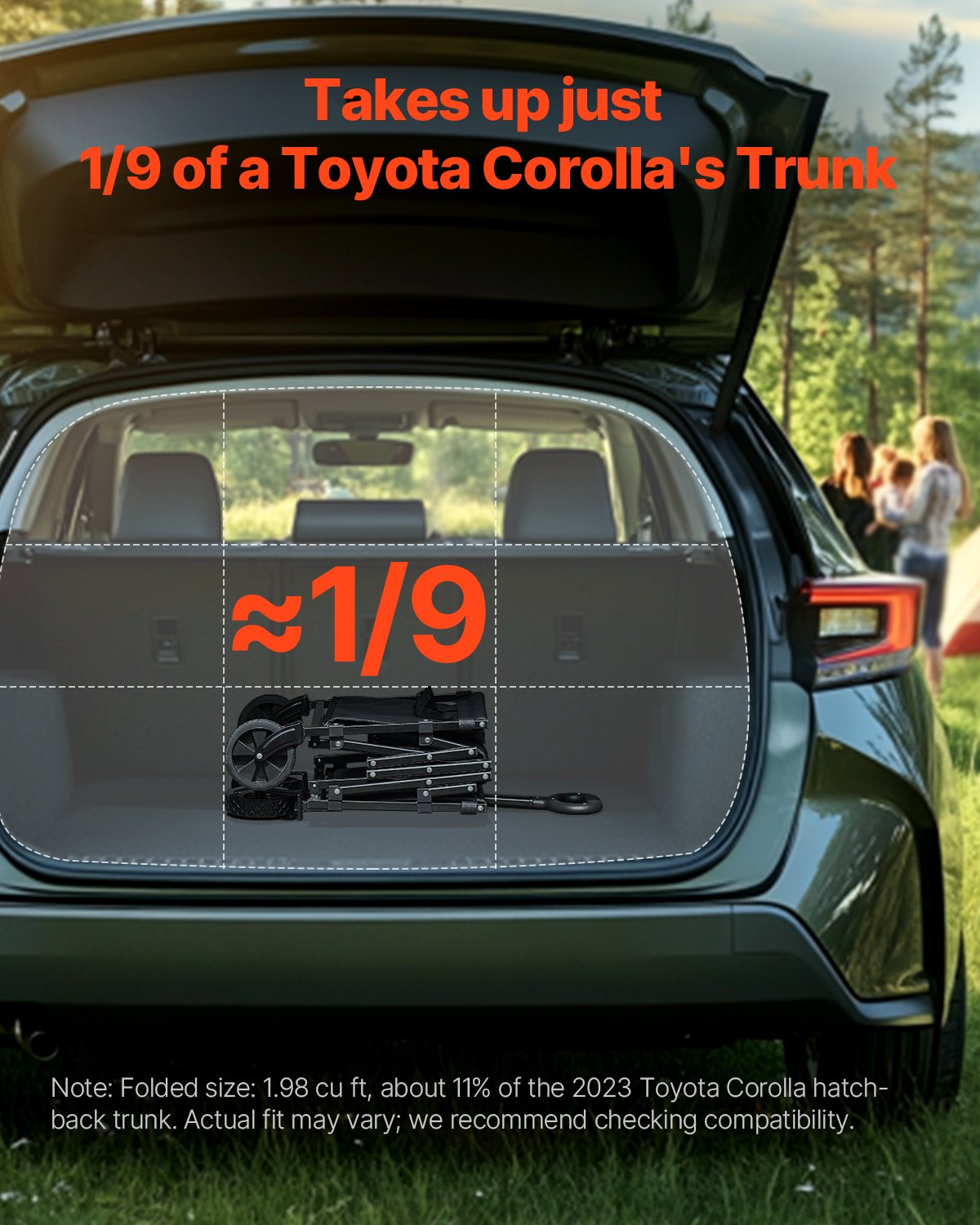 VEVOR Sklopiva kolica 66x45x46 cm, 102 kg, Sklopiva transportna kolica s terenskim kotačima, Vanjska kolica s podesivom ručkom, Kamp kolica za plažu, trgovinu, vrt, Crna