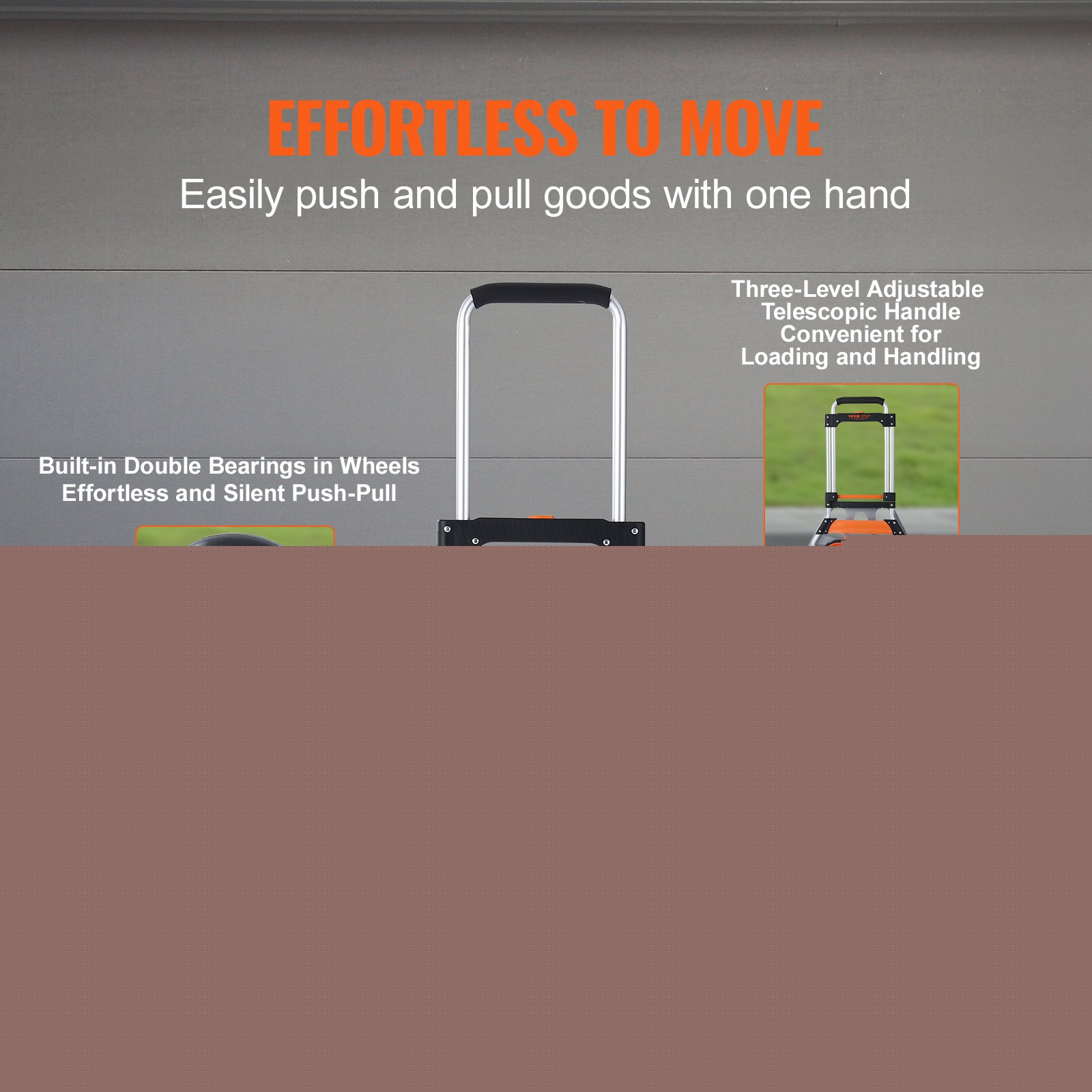 VEVOR Sklopiva ručna kolica, nosivost 125 kg, transportna kolica od aluminijske legure i plastike s podesivom ručkom (820-1105 mm), sklopiva kolica s užetom za vezivanje, kompaktna veličina za pohranu