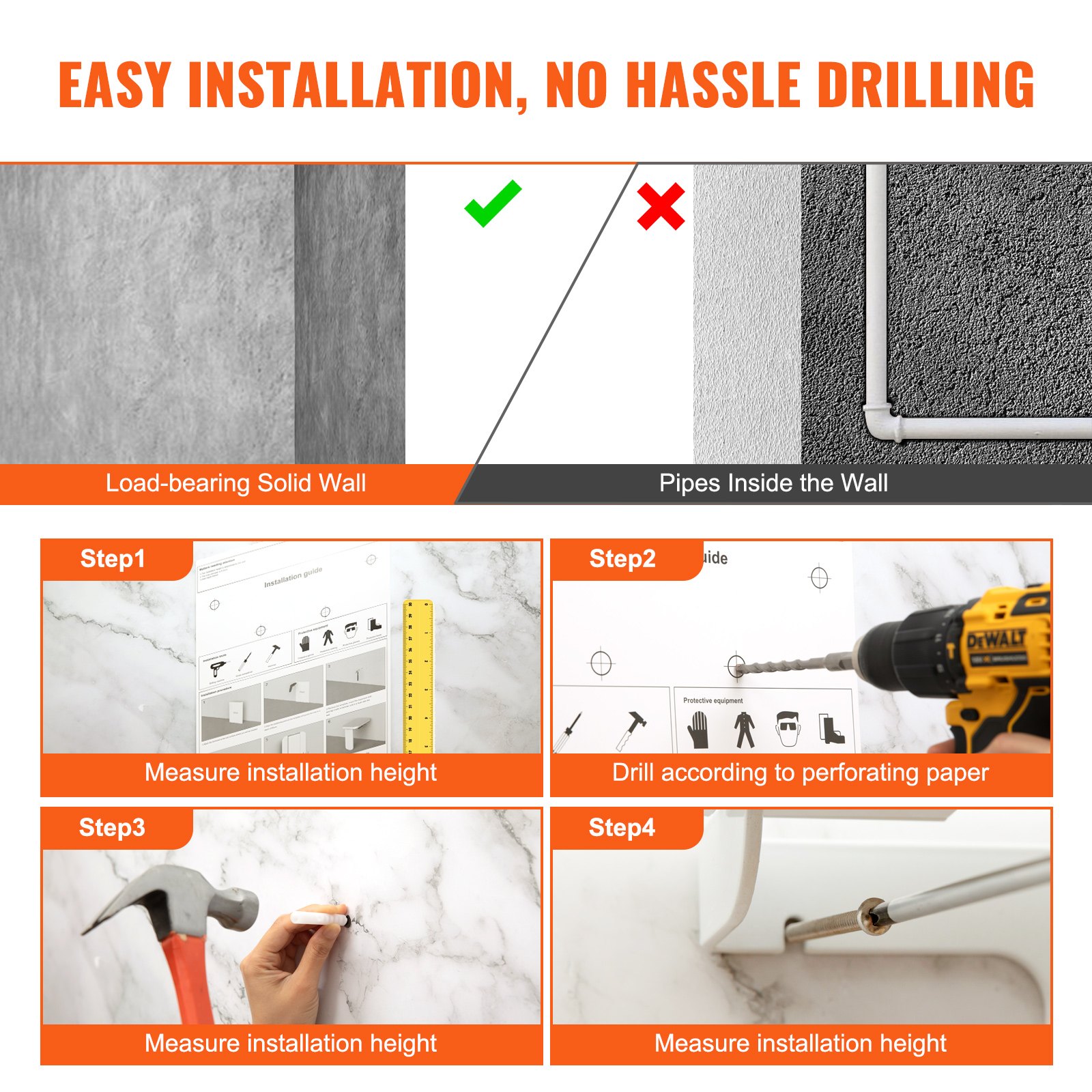 VEVOR sklopiva tuš sjedalica izrađena od ABS-a, 40 x 42 cm rasklopljena, za montažu na zid, sklopiva tuš klupa nosivosti 200 kg, sklopiva tuš stolica koja štedi prostor za starije osobe, trudnice, djecu itd.