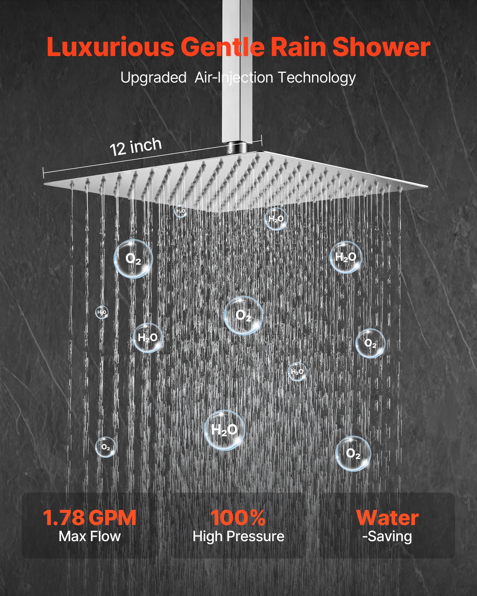 Duljina ruke tuša: 12 inča / 305 mm (bez navoja), Duljina crijeva: 71 inča / 1803 mm, Ugradnja: Stropna montaža, Maksimalni protok: 1,78 GPM (6,7 L/min), Duljina ručnog tuša: 7,87 inča / 200 mm, Oblik glave tuša: Kvadratni, Težina proizvoda: 7,72 lbs / 3,5 kg, Veličina ploče: 7,28 x 5,51 inča / 185 x 140 mm, Dimenzije ruke tuša + glave tuša: 11,81 x 11,81 x 14,76 inča / 300 x 300 x 375 mm, Boja: Brušeni nikal, Veličina tuš glave: 12 inča / 305 mm, Vrsta navoja: G 1/2 inča, Broj modela artikla: DF12-221G