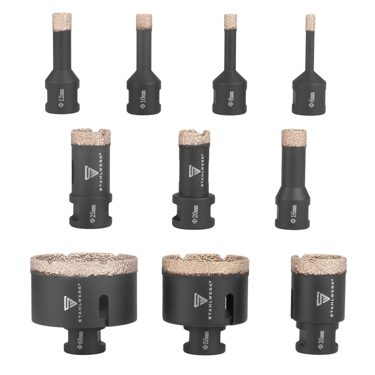 • 10 x STAHLWERK dijamantna svrdla 6, 8, 10, 12, 16, 20, 25, 35, 55, 68 mm