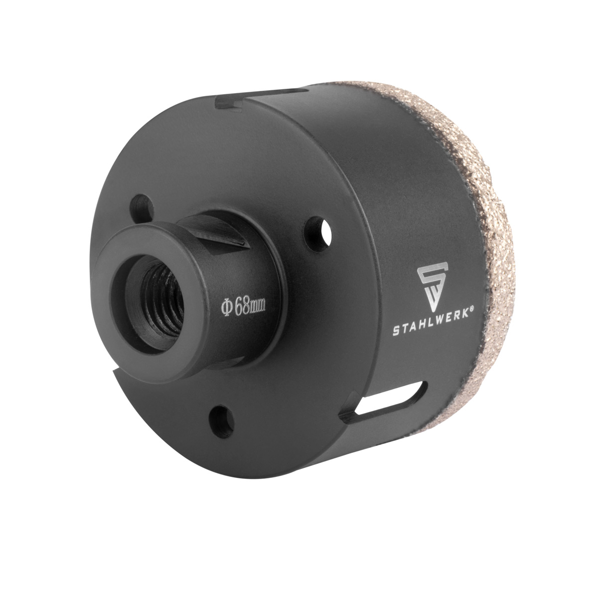 • Set dijamantnih svrdla za bušenje STAHLWERK, s različitim promjerima (6, 8, 10, 12, 16, 20, 25, 35, 55, 68 mm) i prihvatom M14, idealan je za profesionalno bušenje kutnom brusilicom.