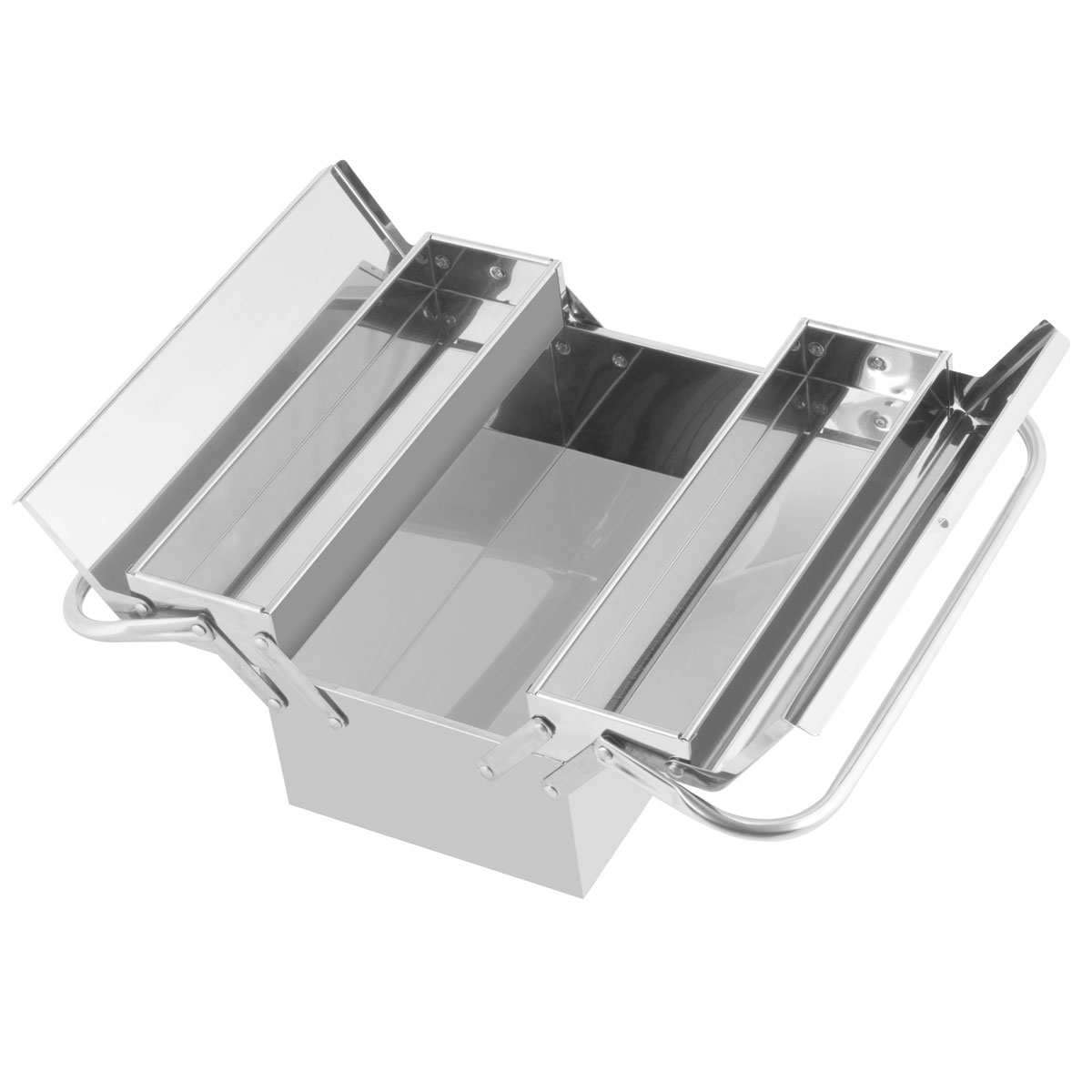 - Izrađena od nehrđajućeg čelika, ova kutija za alat pouzdan je, izdržljiv i dugotrajan pratitelj na gradilištima ili u kućnim radionicama.