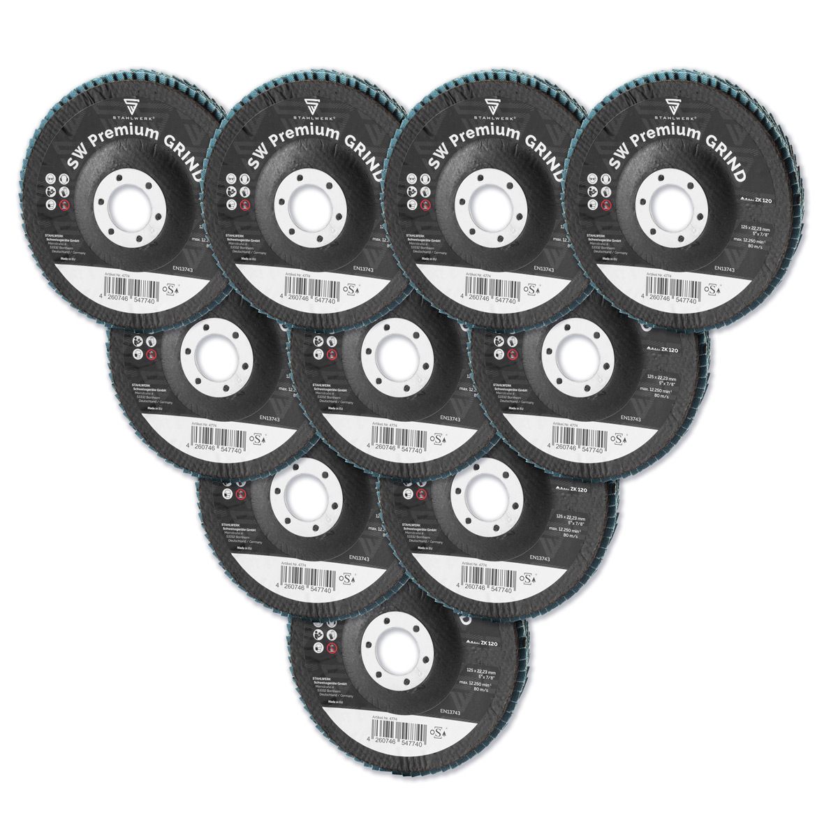 STAHLWERK SW Premium GRIND P120 Lamelni i lamelni disk, set od 10 dijelova, 125 x 22,23 mm | Brusni diskovi 5″ x 7/8″ | Lamelni diskovi | Lamelni diskovi za kutne brusilice za brušenje čelika, nehrđajućeg čelika, aluminija i obojenih metala