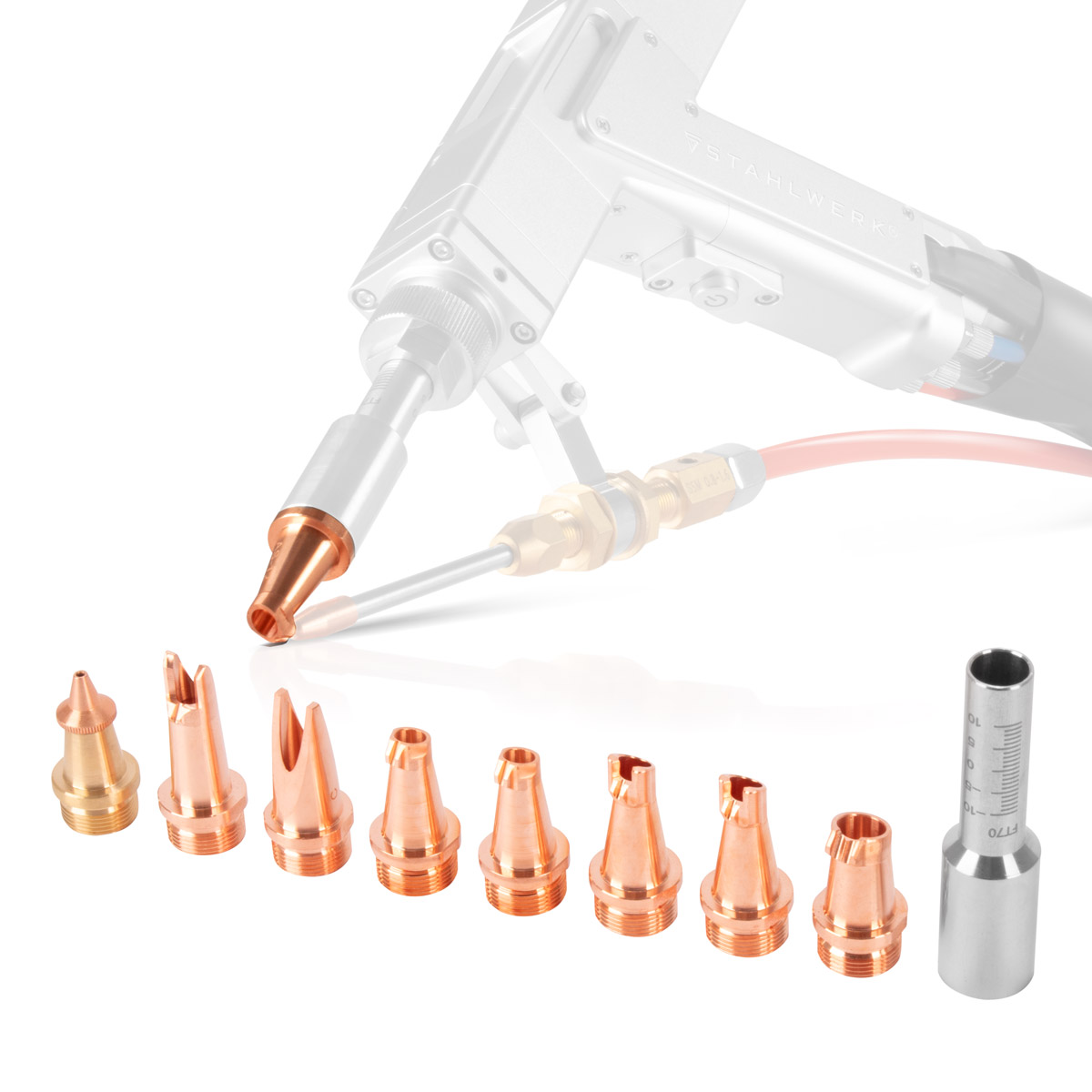 - STAHLWERK set laserskih mlaznica proizveden je prema visokim standardima i prikladan je za ručne laserske plamenike za zavarivanje/laserske aparate za zavarivanje s maksimalnom snagom od 2000 W.