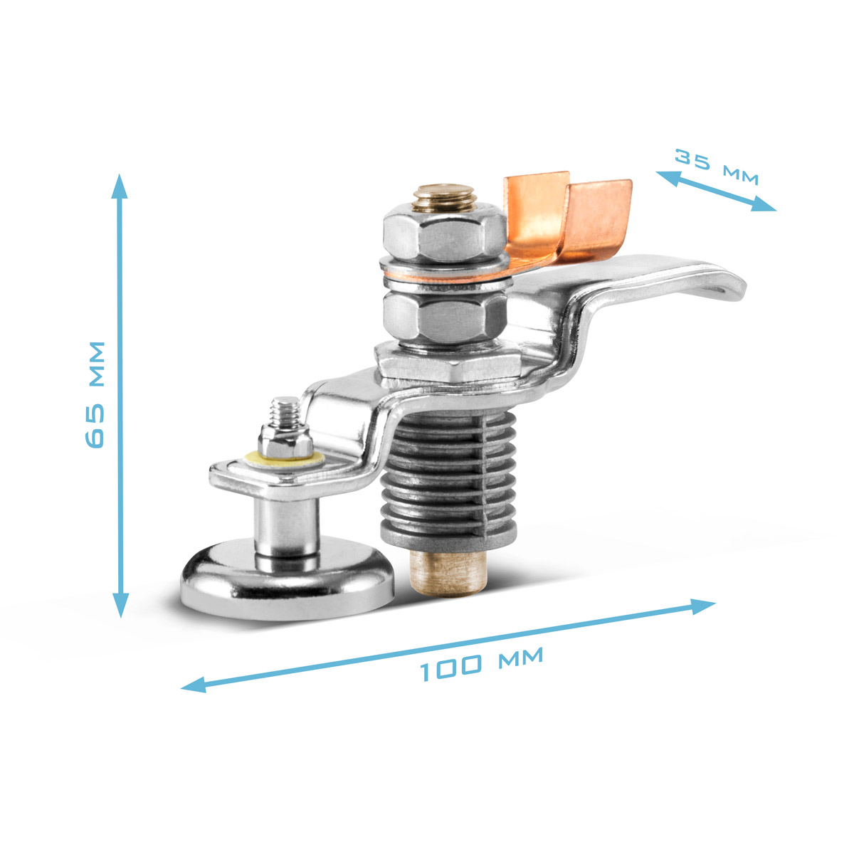 Magnetska stezaljka za uzemljenje EC-200 ST povećava udobnost korisnika i nudi maksimalnu fleksibilnost za praktično, brzo, sigurno i praktično uzemljenje na aparate za zavarivanje ili plazma rezače. Njen snažan magnet, bakreni terminalni blok i priključak koji se može rotirati za 360 stupnjeva osiguravaju fleksibilno i jednostavno rukovanje. Kompaktni dizajn omogućuje spajanje magnetske stezaljke za uzemljenje na bilo koji magnetski radni komad i može se lako pričvrstiti ili premjestiti, čak i uz nošenje rukavica. Pruža sigurno držanje na raznim oblicima feromagnetskih materijala (kao što su okrugle cijevi) s visokom nazivnom strujom do 200 A i izvrsnom vodljivošću. Pogodna je za sve strojeve za zavarivanje i rezanje, uključujući TIG/MIG/MAG/ARC/MMA i plazmu. Visokokvalitetni, robusni i izdržljivi materijali osiguravaju dugi vijek trajanja. Magnetska stezaljka za uzemljenje zamjenjuje tradicionalnu stezaljku za uzemljenje i štiti osjetljive površine radnog komada od ogrebotina i oštećenja.