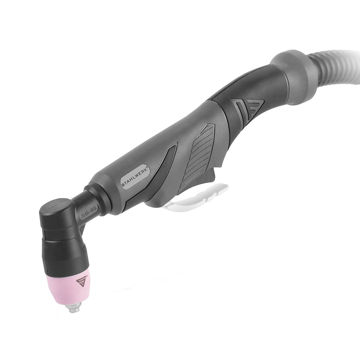 Zračno hlađeni plazma plamenik STAHLWERK AG-60 opremljen je zrakom hlađenim crijevom i dizajniran je za struju do 70 ampera. Crijevo od 8 metara ima integrirani priključak za uzemljenje, što eliminira potrebu za dodatnim priključkom i čini crijevo robusnijim. Prekidač za paljenje spojen je putem 2-pinskog priključka. Plazma plamenik za rezanje AG-60/SG-55 ergonomski je dizajniran i omogućuje dulje sesije rezanja bez umora. Ovaj paket crijeva prikladan je za sljedeće kombinacije uređaja ili plamenika: TIG AC/DC 200 Pulse Plasma/S-serija, DC kombinirane jedinice CT-520 Plasma / S-serija, CT-50 Pulse Plasma / S-serija, CT-535 Plasma / S-serija, kao i s plazma rezačem CUT 40 S / -ST-serija, CUT 50 / CUT 50 S- /-ST- serija, CUT 55 / S-serija/, CUT 60 / ST- serija, CUT 70 / S-serija (bez pilot paljenja).